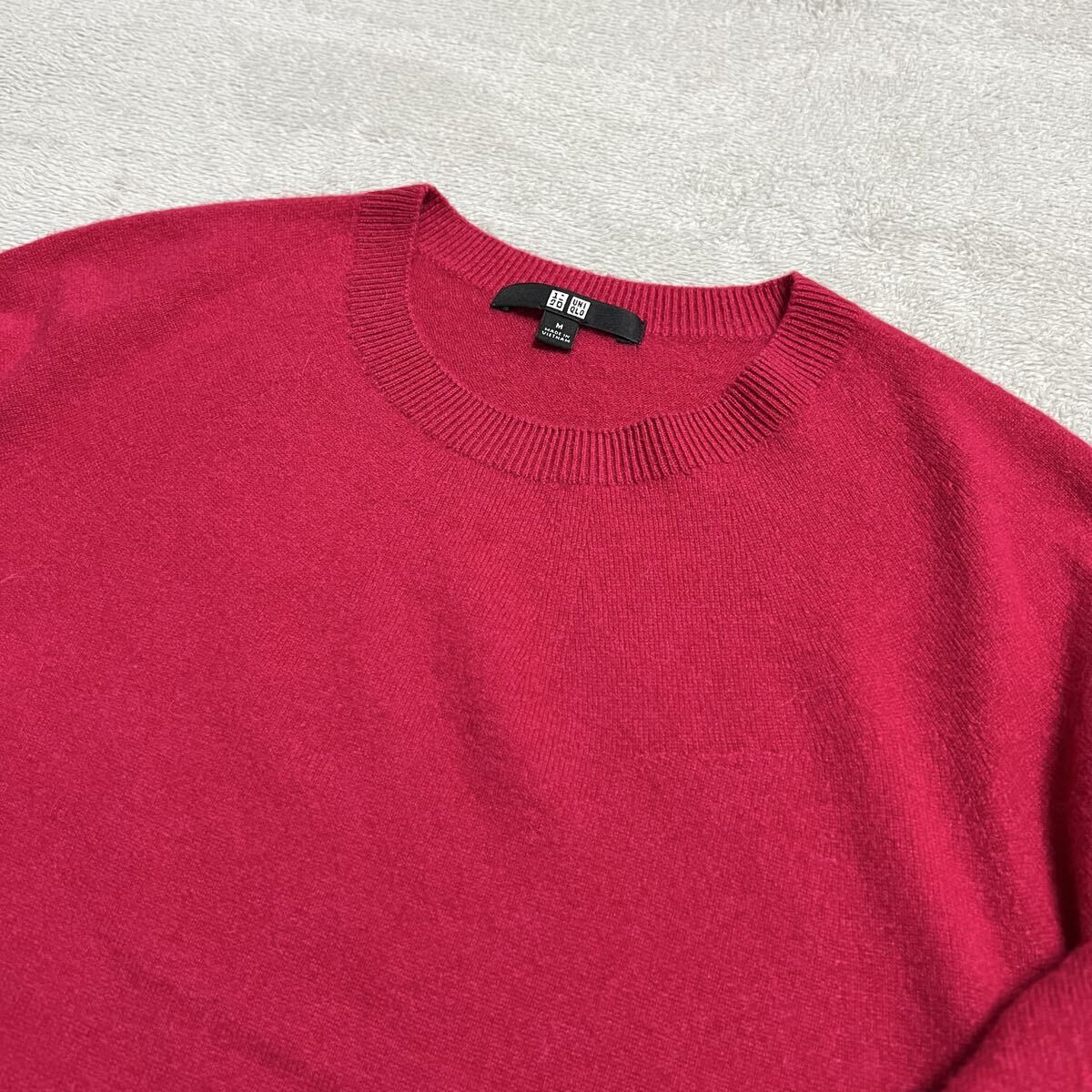 ★送料360円★美品 カシミア100% UNIQLO ユニクロ カシミヤ ニット セーター 長袖 サイズM クルーネック ピンク系 レディース R-8100