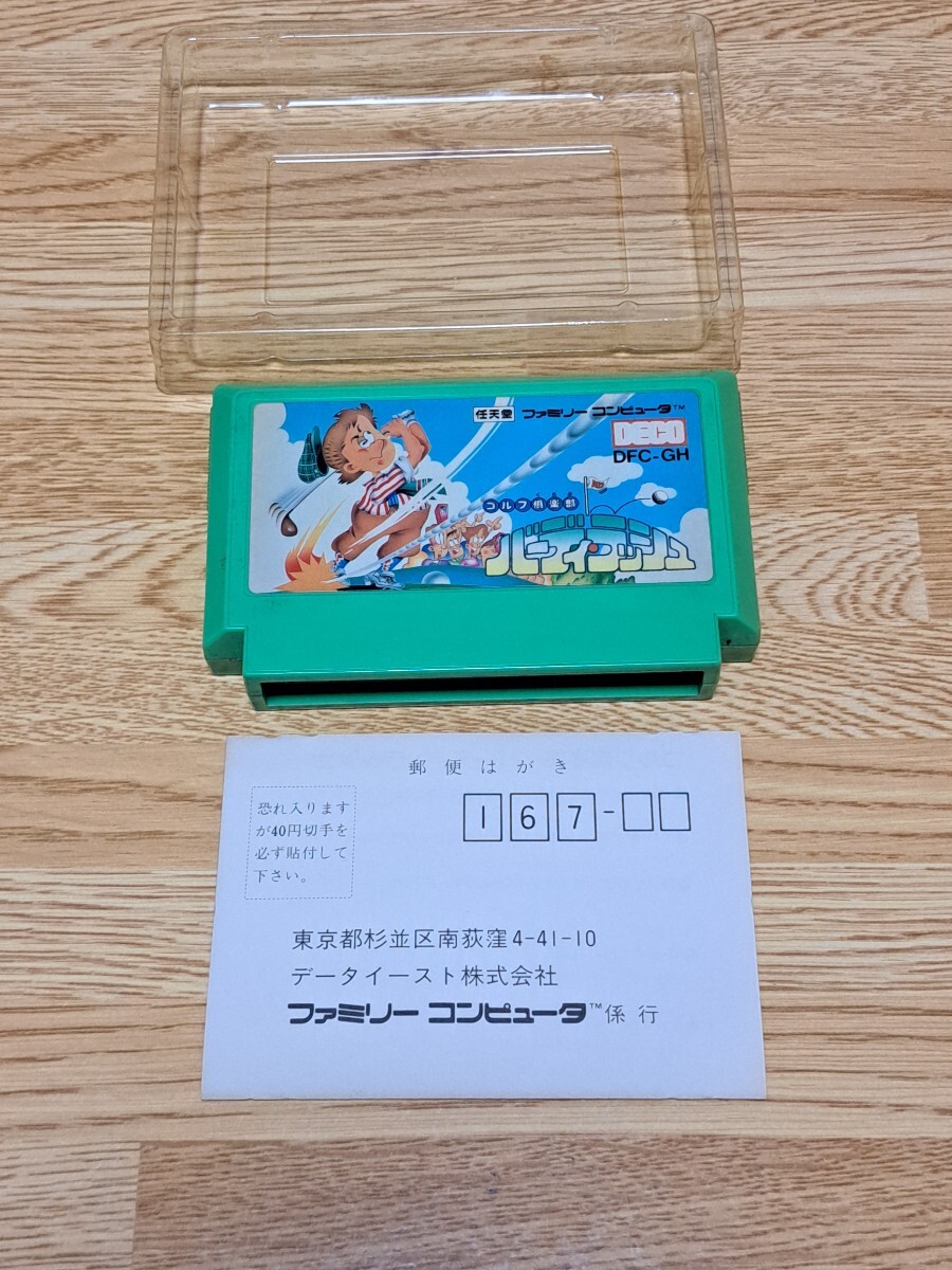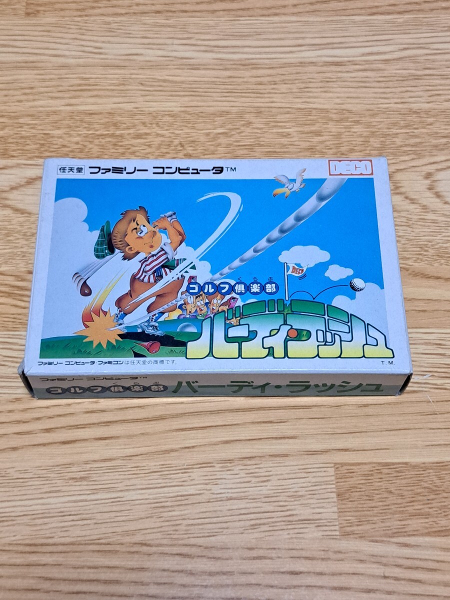ファミコンソフトのゴルフ倶楽部バーディラッシュです。箱ハガキ付。初期画面確認済み。経年の割りには並品かと。説明書はあります。。箱耳は4つあります。ハガキはヤケています。バッテリーバックアップは保証しません。写真のものが全てですが写真だときれいに写ります。素人判断であることをご理解のうえ、入札をお願いします。ノークレームノーリターンで。