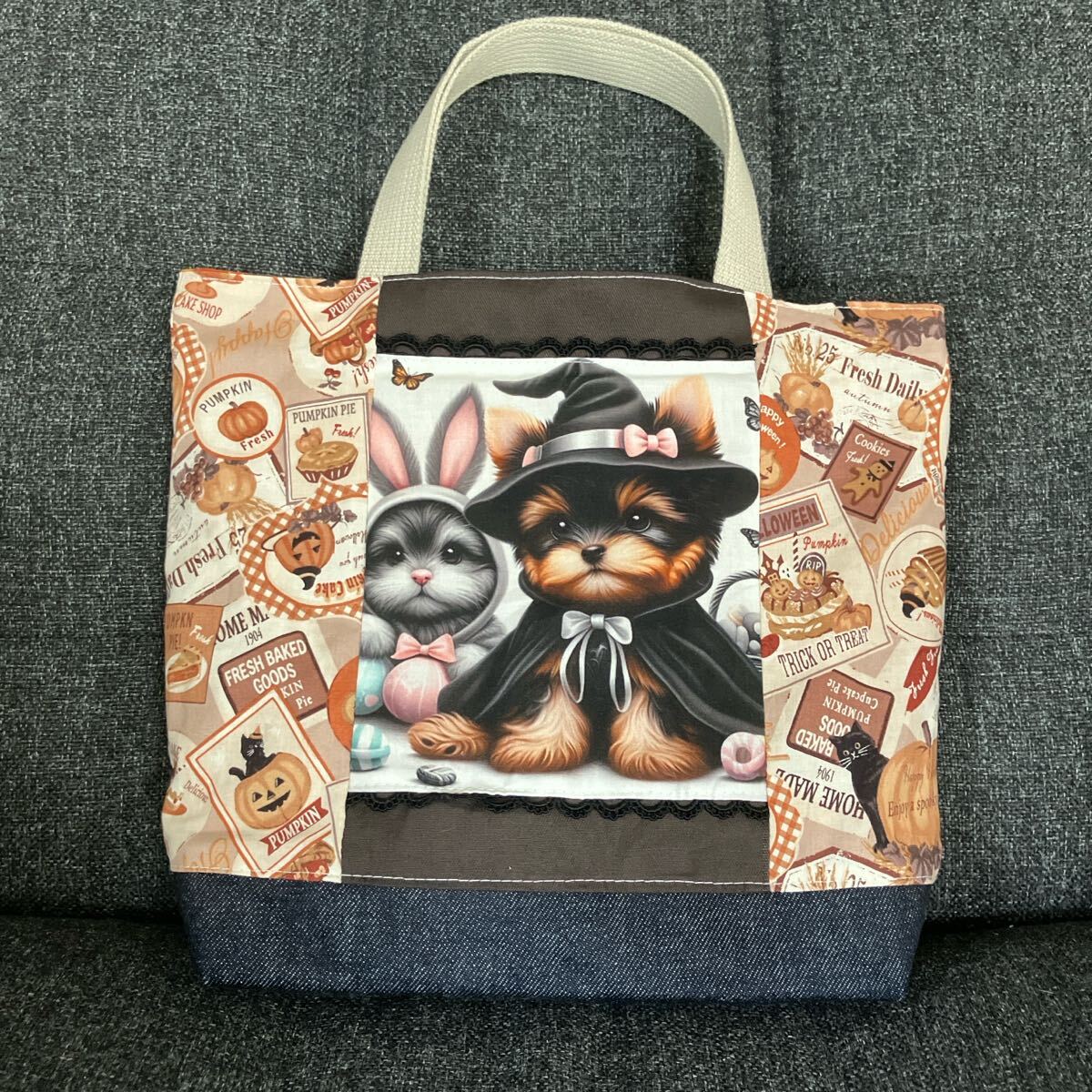 可愛いわんちゃんのパネル生地でトートバッグを作りました。