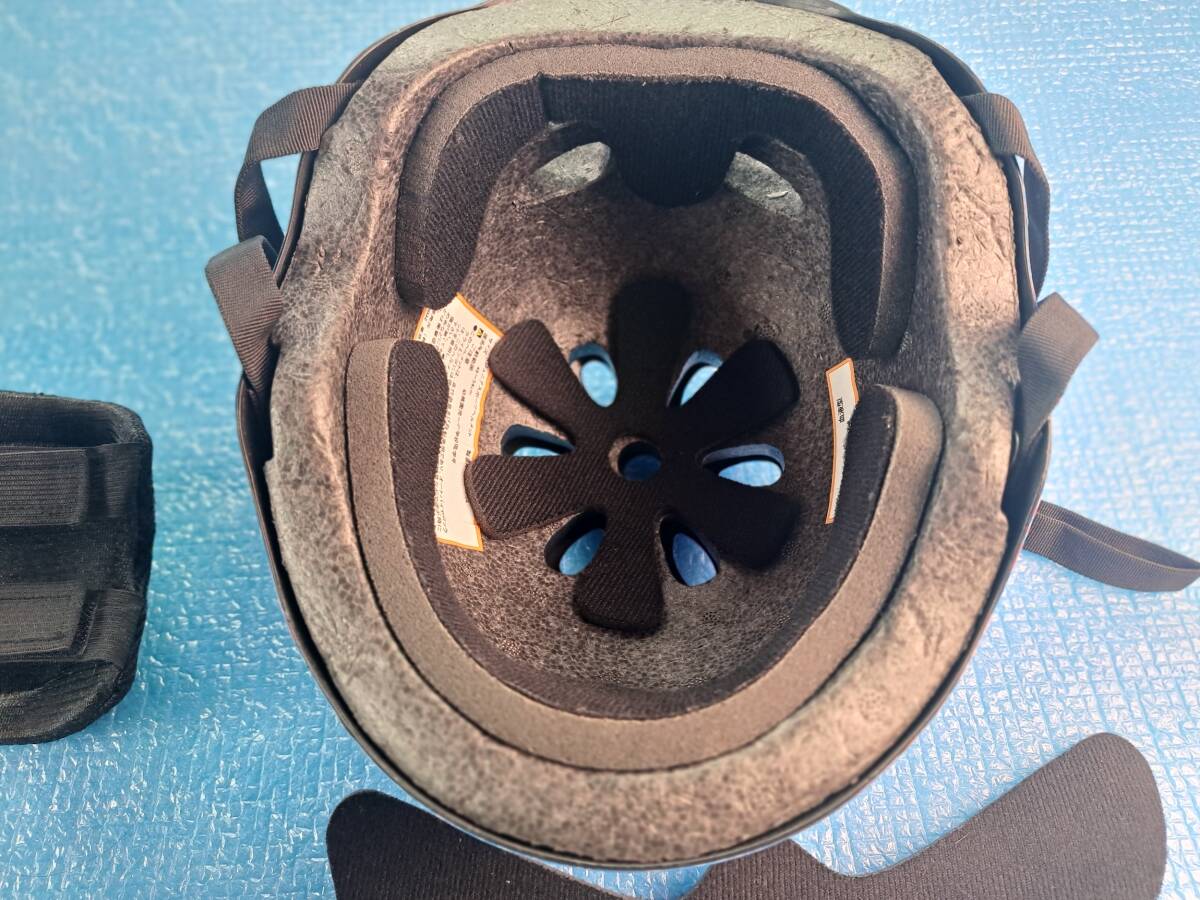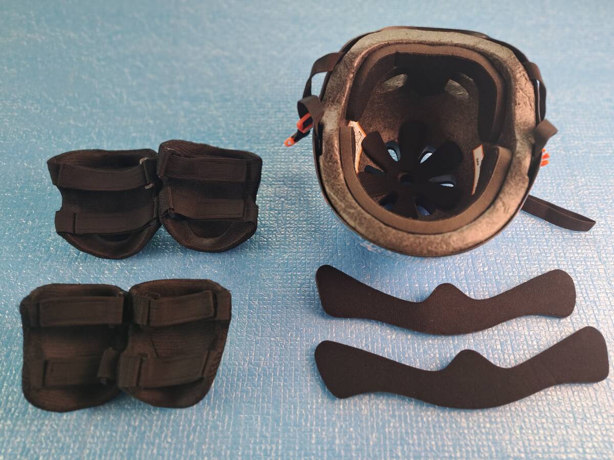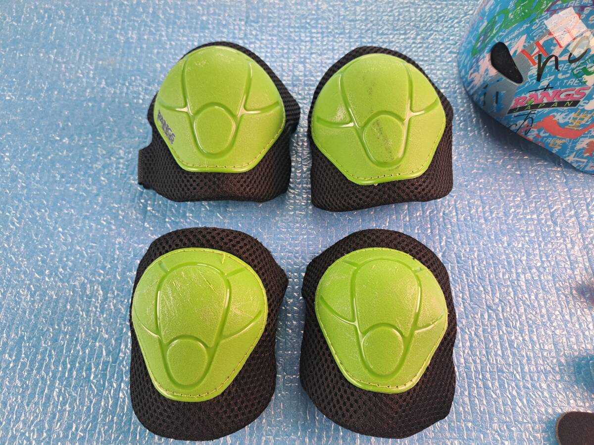 ヘルメットは綺麗な方だと思いますが、肘あてと膝あては画像の通り傷や汚れなどがあります。
