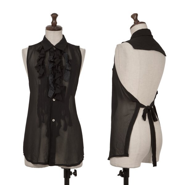 | ローブドシャンブル コムデギャルソンrobe de chambre COMME des GARCONS シアーフリルパッチホルターネックトップス 黒M位 |