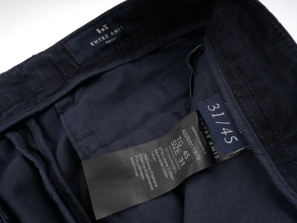 【新品未使用】ENTRE AMIS アントレアミ◆Made In Italy◆31◆ガーメントダイ スリム ストレッチ コットン パンツ◆モールスキン ネイビー