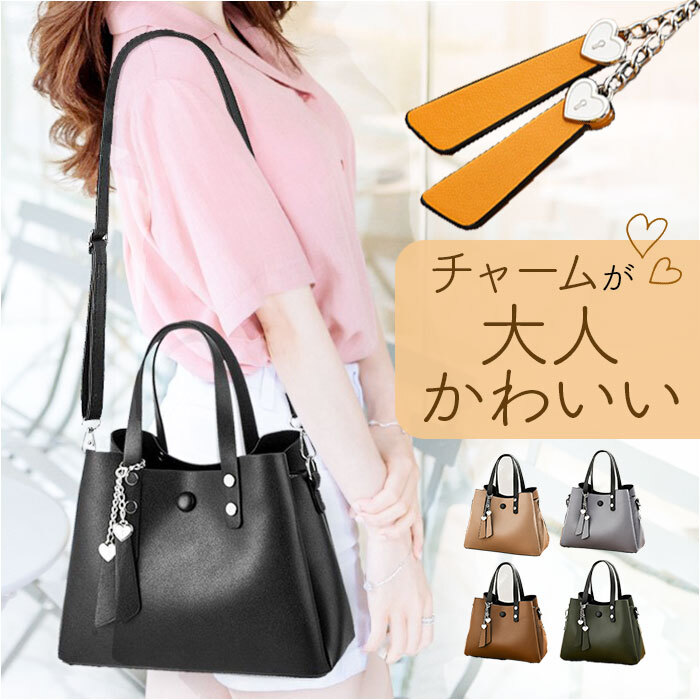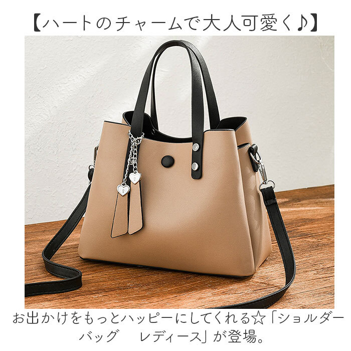 商品説明 | ・・【ハートのチャームで大人可愛く♪】 ・お出かけをもっとハッピーにしてくれる☆「ショルダーバッグ レディース」が登場。 ・【大人っぽさと可愛さどっちも取り☆】 ・落ち着きのあるレザー調の生地の大人バッグに、ハートのチャームでキュートさをプラス! ・【コンパクトに見えてたっぷり収納】 ・ころんとコンパクトだけど、ペットボトルや折り畳み傘が入る収納力◎お出かけを快適に。 ・【荷物を仕分けて整理整頓】 ・フロント収納に、ポケットを3つ。前後のマグネットボタンを外せばそこにも収納できる作り。 ・【汚れにくい底鋲つき!】 ・床に置いてもバッグが傷みにくく、汚れにくい!型崩れしにくいのが嬉しいポイント。 ・【ポケット仕様】 ・前後:マグネットボタンポケット×2 ・メイン収納:オープンポケット×2、ファスナーポケット×1 |