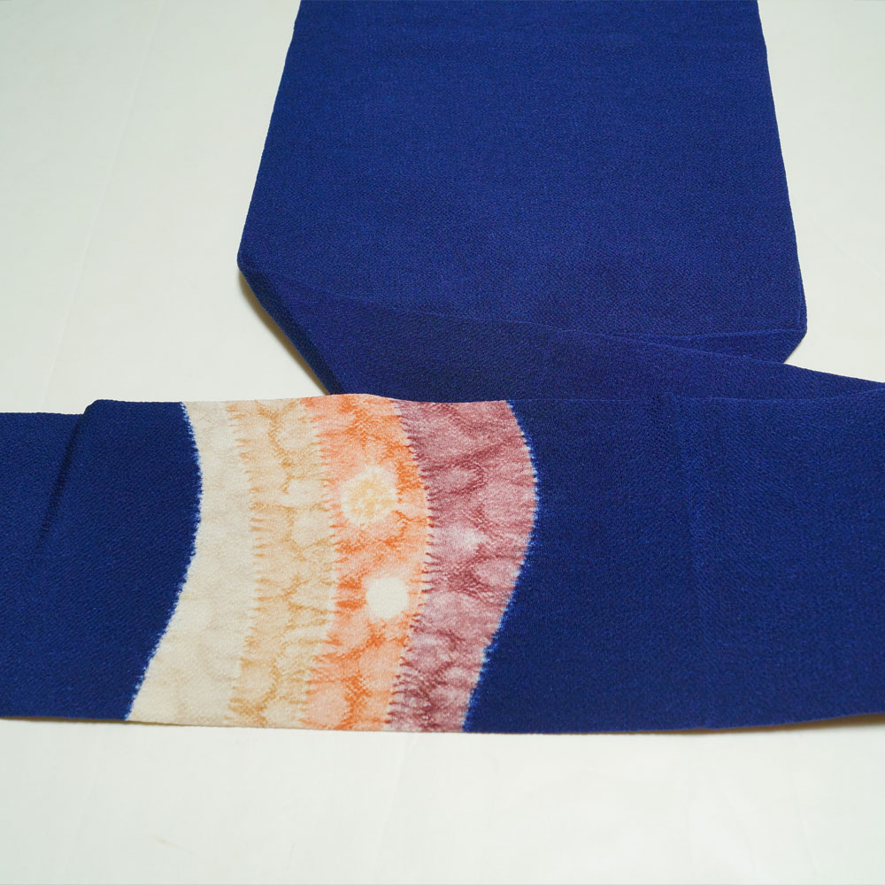 状態 | ※ランク3 お着物はあまり使用されていないようですが、左前袖に織難が1点、下前の衿先裏地に黄変シミが1点あります。 帯はおそらく未使用品ですが、若干の染ムラ感、微細な染め飛びがあります。 |