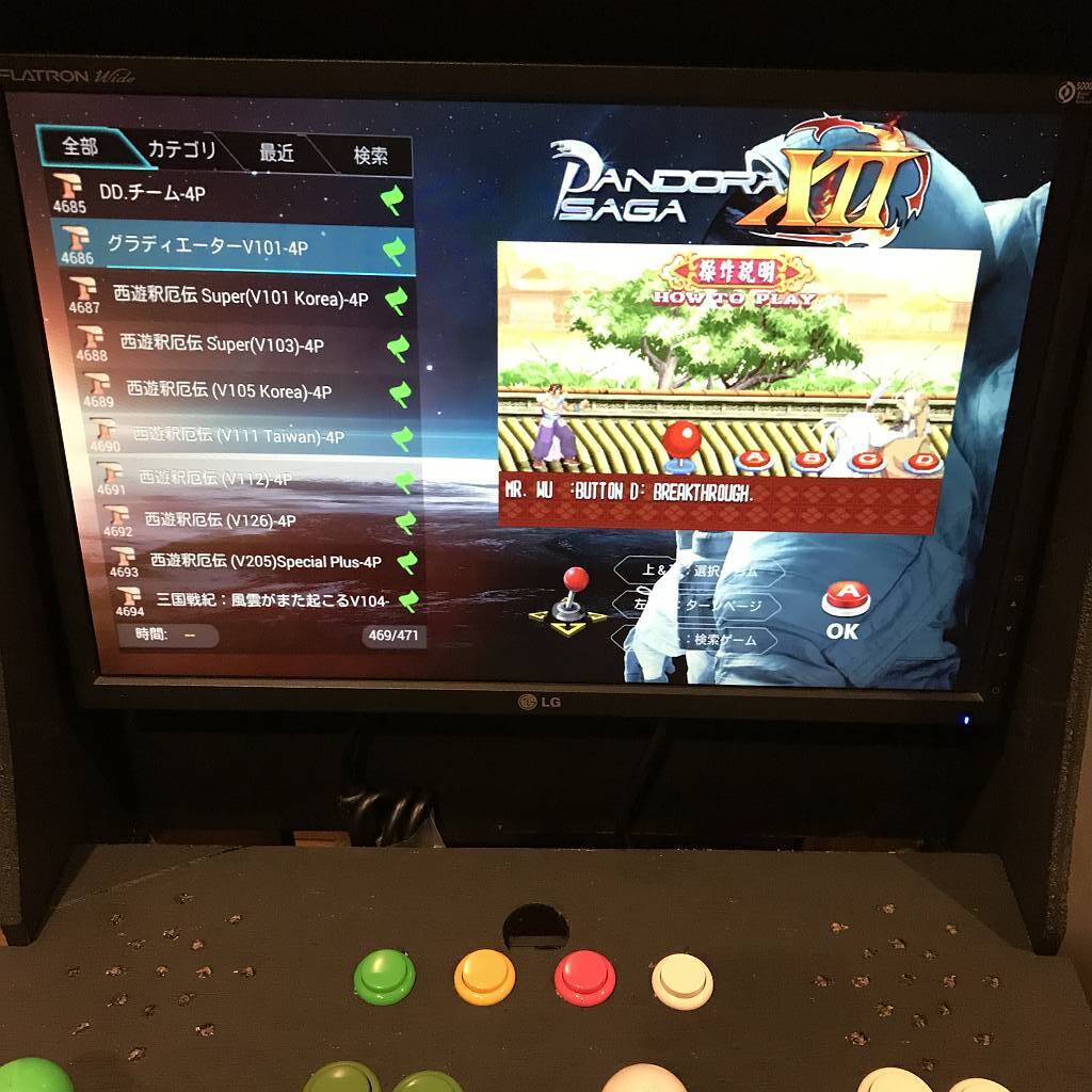 レバー上下左右操作でゲームリスト移動、ボタンを押してゲーム選択とゲーム開始、