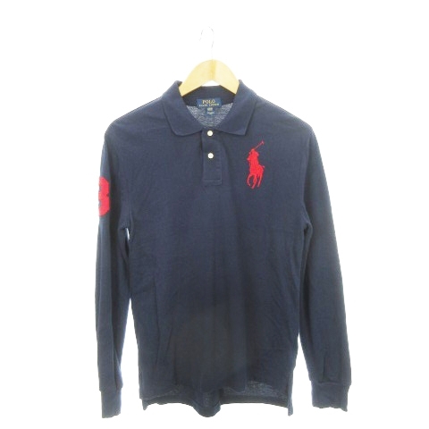 ポロ ラルフローレン ポロシャツ 長袖 ビッグポニー ロゴ刺繍 3 鹿の子 コットン 男の子 ボーイズ L(14-16) 160/80 紺 ネイビー