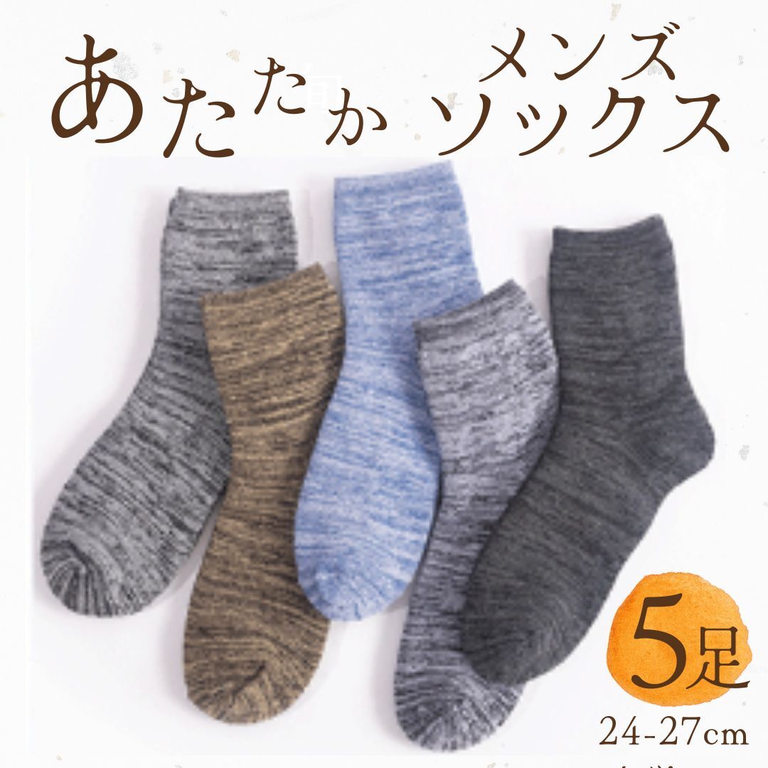 メンズ 5足組 靴下 ソックス 秋冬 裏起毛 シンプル カジュアル 5色 あたたか 送料無料 新品 まとめ売り