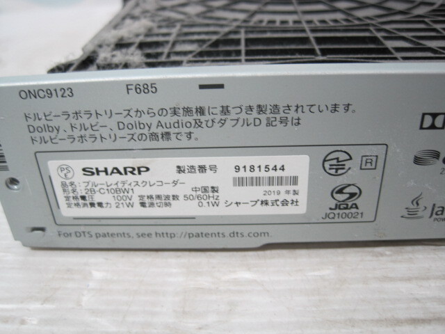 | 9-487♀SHARP/シャープ BDレコーダー 2B-C10BW1 19年製♀ | |