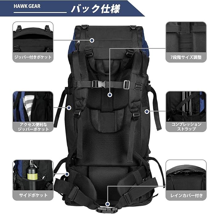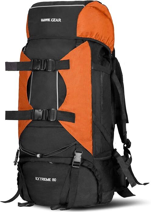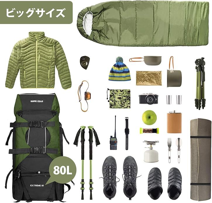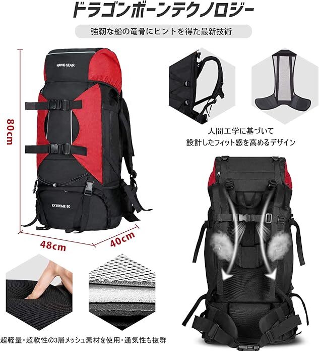 ビッグサイズで安心装備 オレンジ色 HAWK GEAR(ホークギア) バックパック 80L 登山 旅行 リュック ザック キャンプ アウトドア