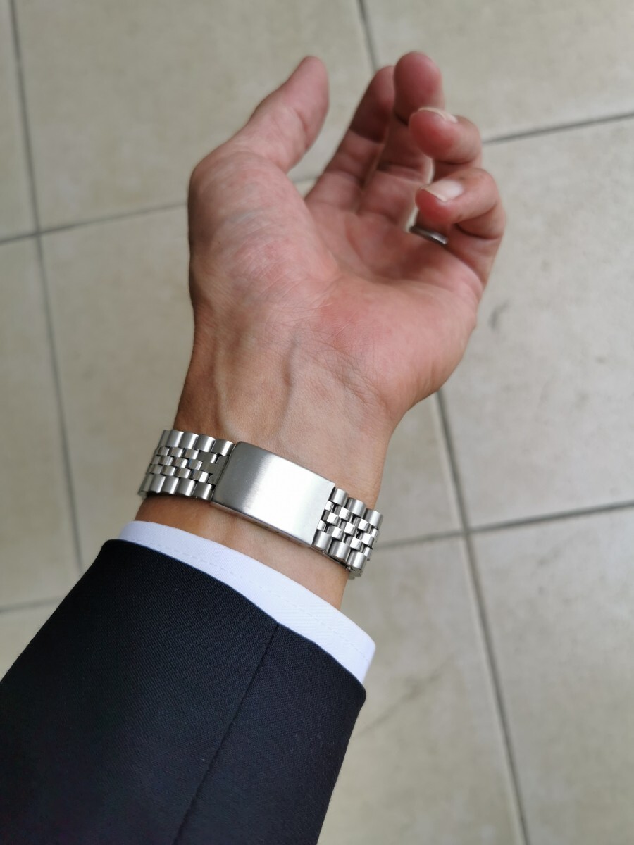 写真は自分の腕の太さに調節してありますが、もともと20cmくらいあって余りのコマを全部付けた状態で包んで送ります。