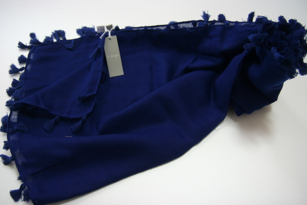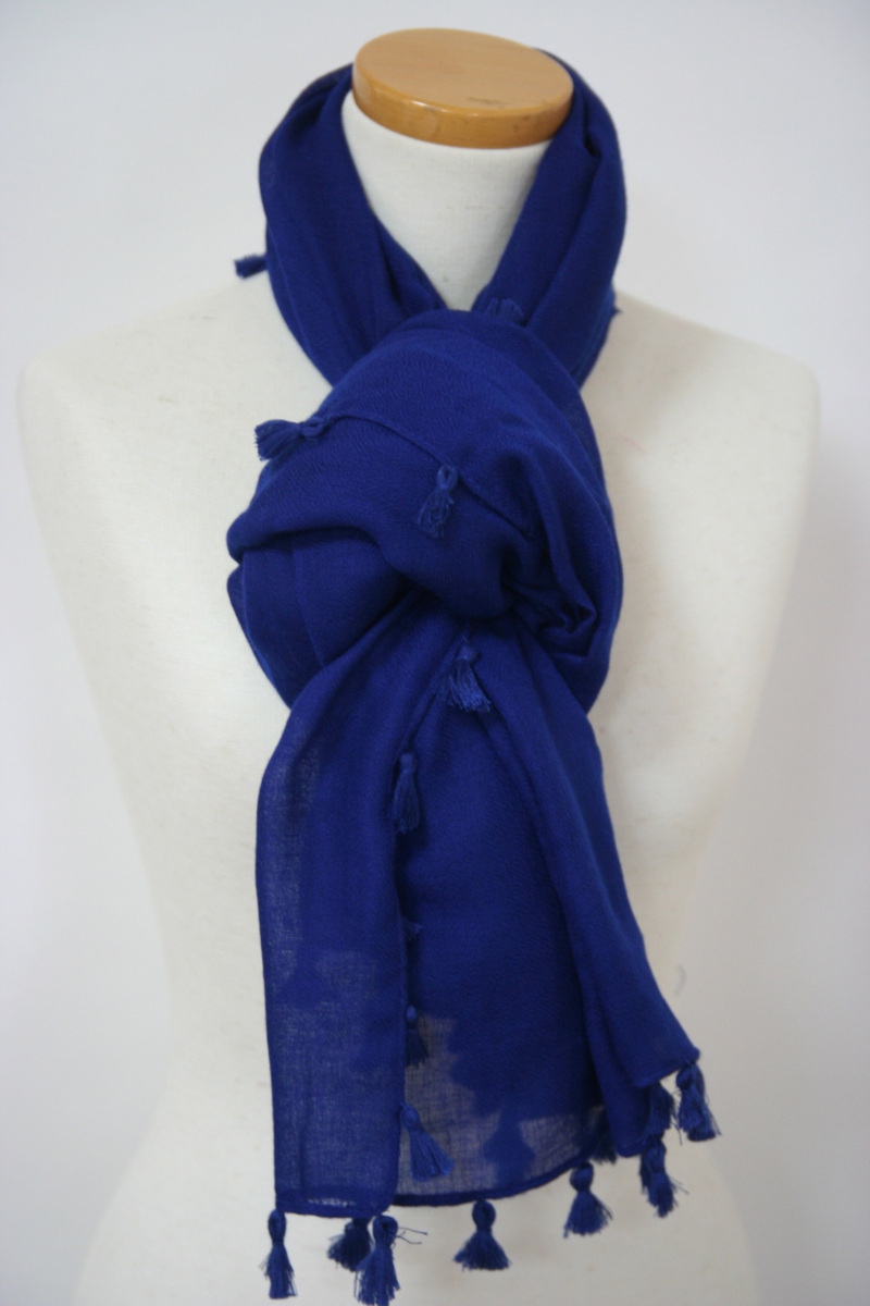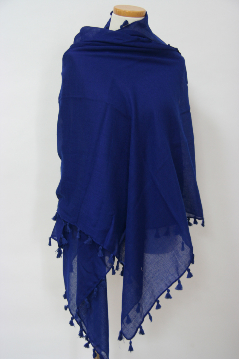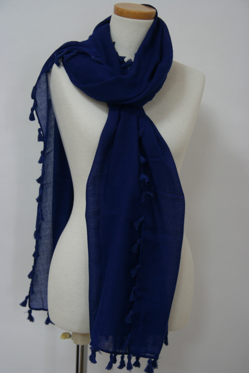 送料無料◆通年タイプ◆プレーンカラー◆日焼け&紫外線対策◆お洒落アイテム◆ショール◆タッセル付き大判ストール(ネイビーブルー)176008