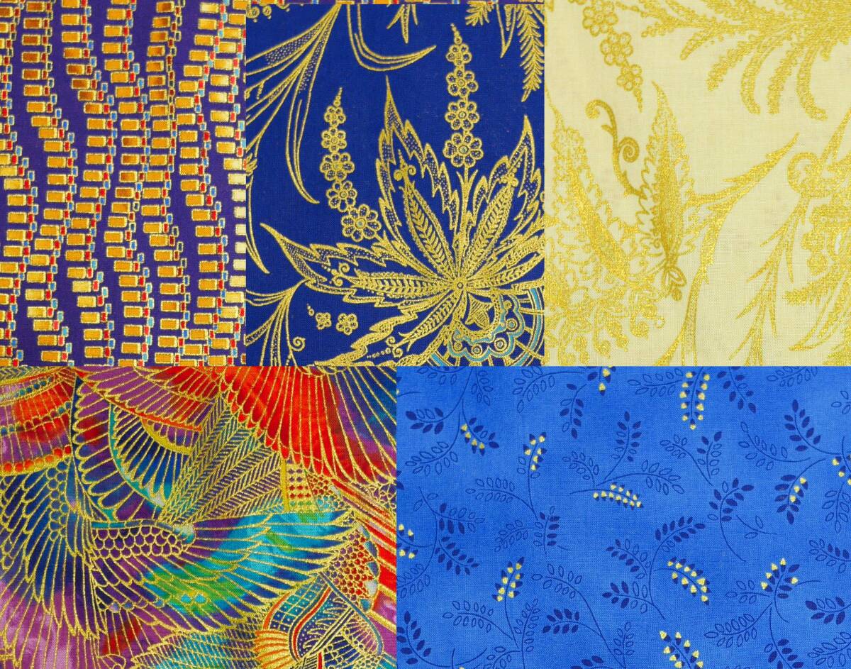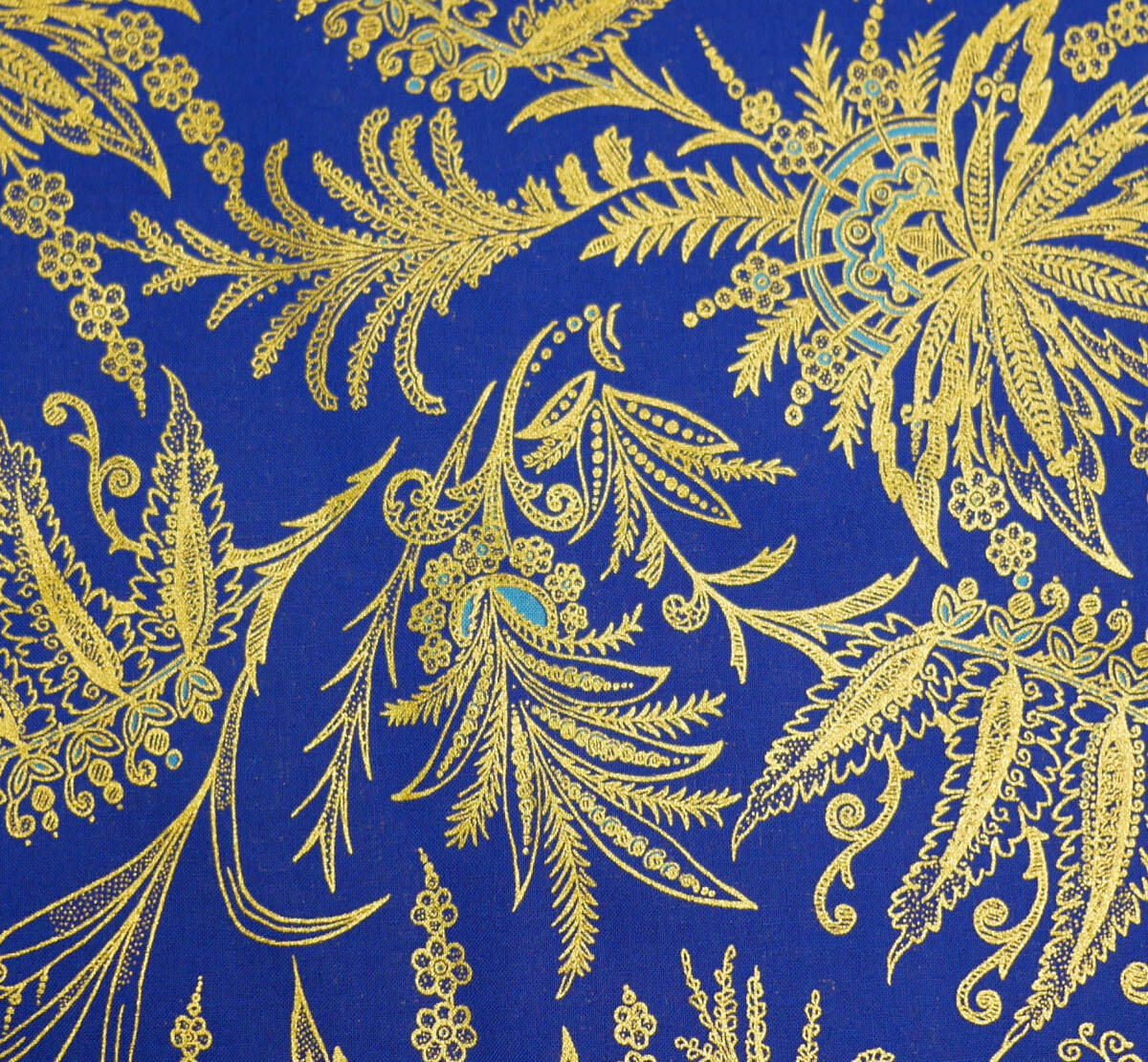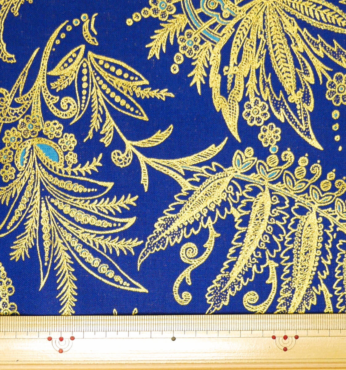 アメリカ はぎれ5枚 アレクサンドリア 25×25 USAコットン ブルー ゴールド m プリント生地