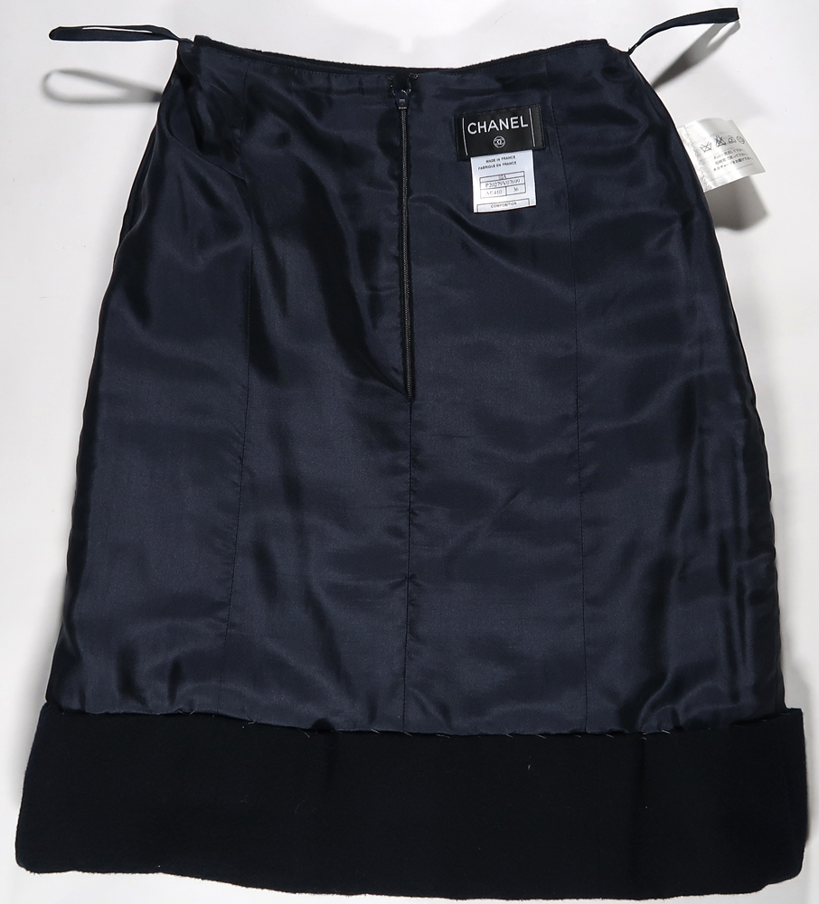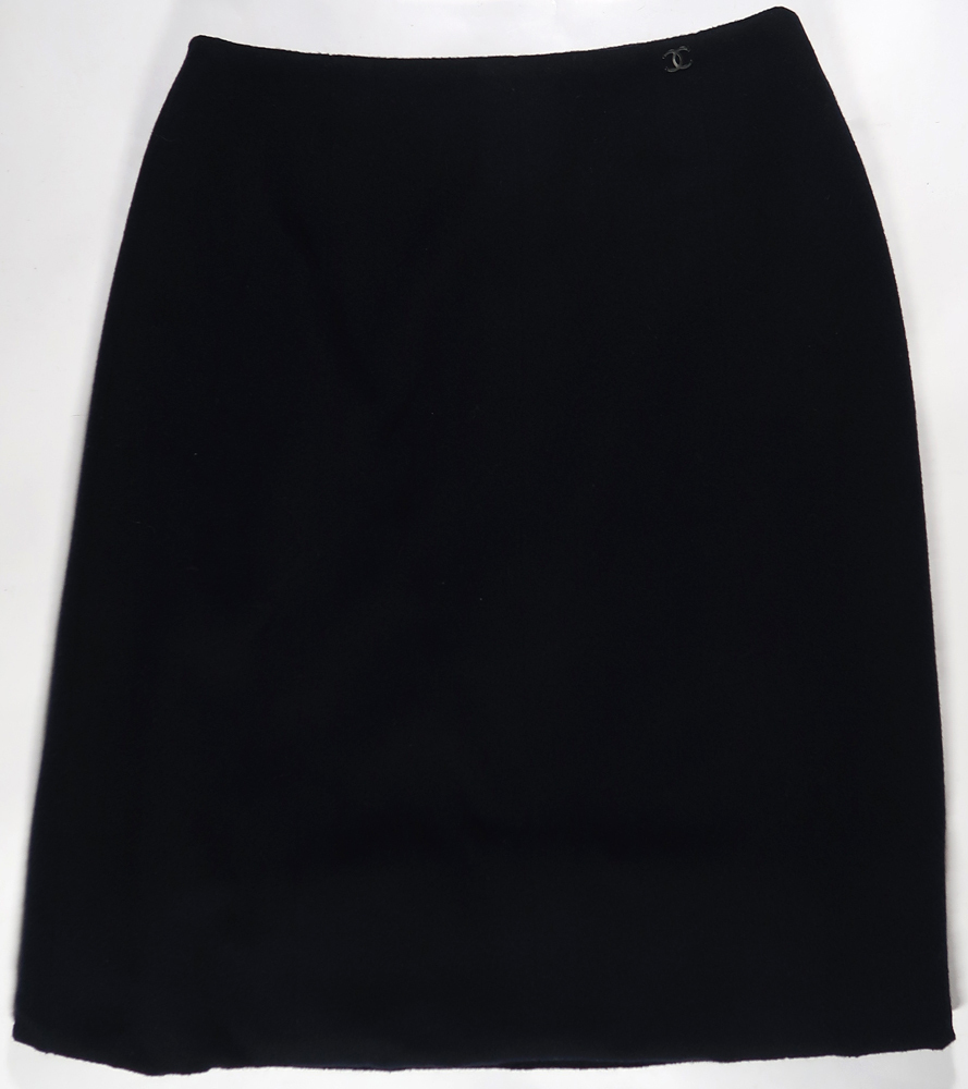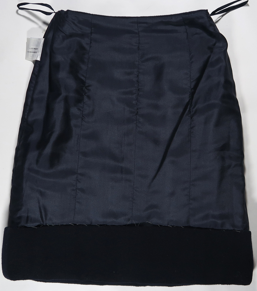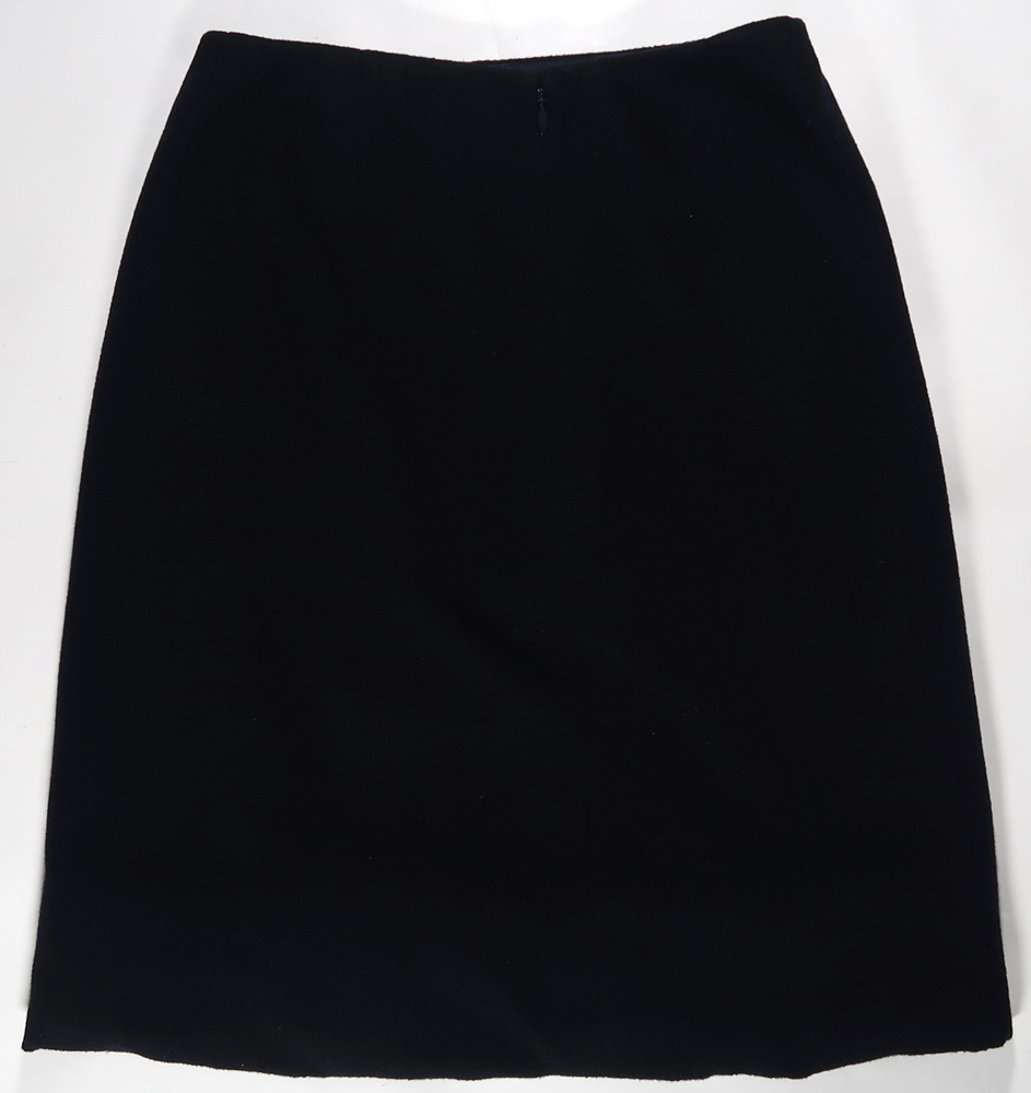 出品は画像の物のみです。使用品ですのでシワ、擦れや汚れはあります。特にひどいダメージはないです。生地は表地はカシミア100%です。裏地はシルク95%、スパンデックス5%です。サイズはスカート丈は48cmくらい, ウエスト62cmくらいです。スカート丈はかなり詰めています。折り返しが裏側にあるのでお直しに出せばもう少し長くできそうです
