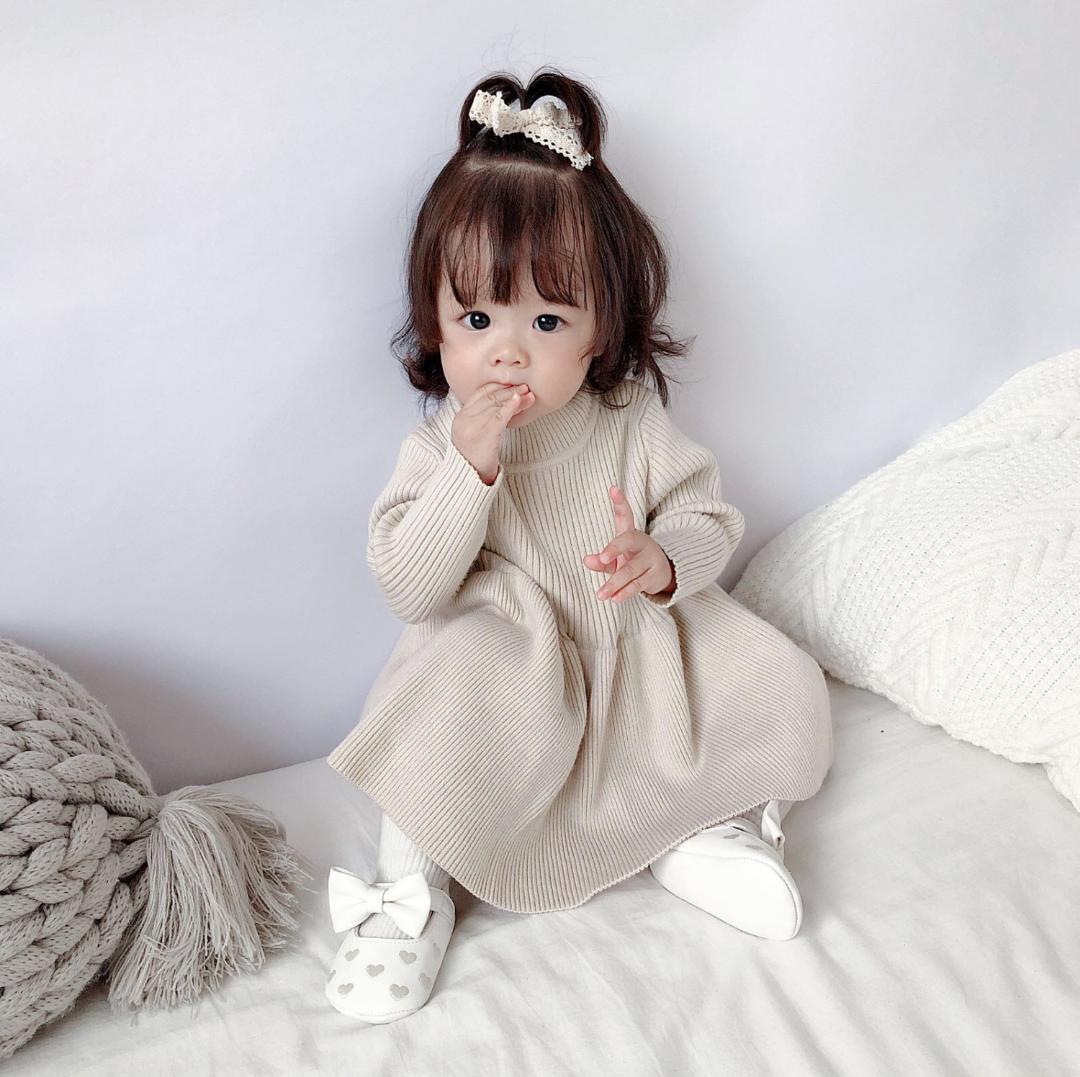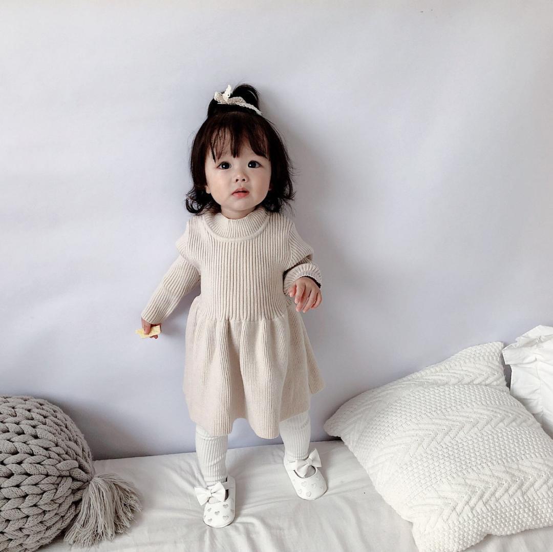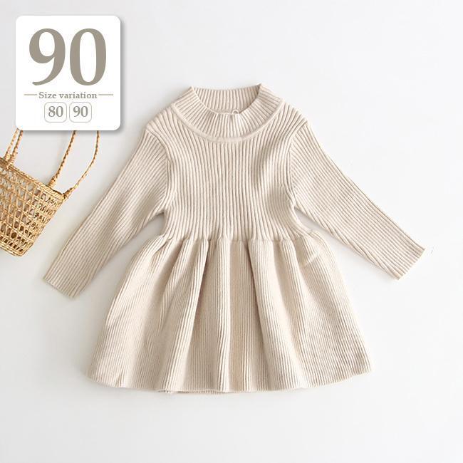 新品未使用 80cm~90cm ベージュ〔#BMハイネックニットワンピース〕ニット ワンピース 長袖 ベビー キッズ 子供服 モックネック 春 秋 冬
