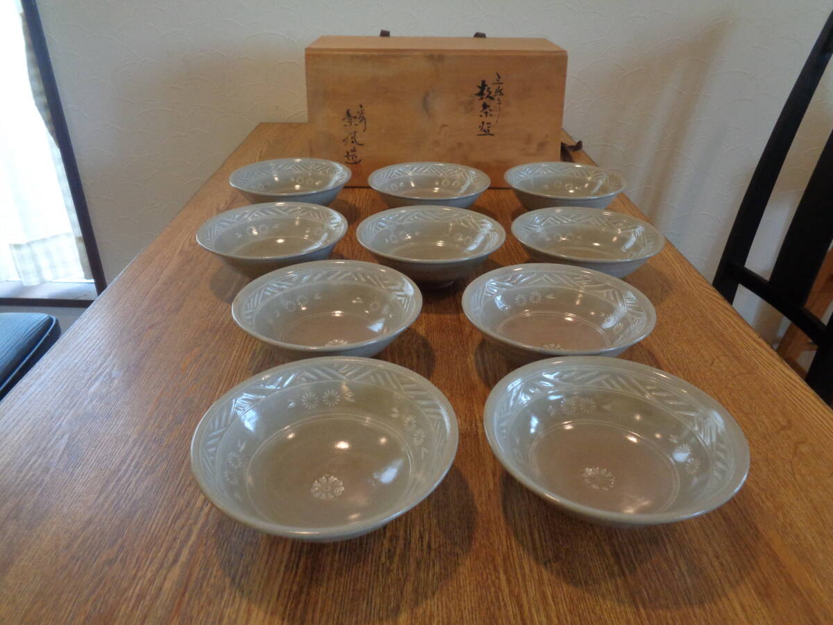 お茶道具 京焼 平安 宗風造 花三島 刷毛目 数茶碗 10客 未使用同然 美品 共箱入りです。未使用だと思いますが確信が無いため同様としました。