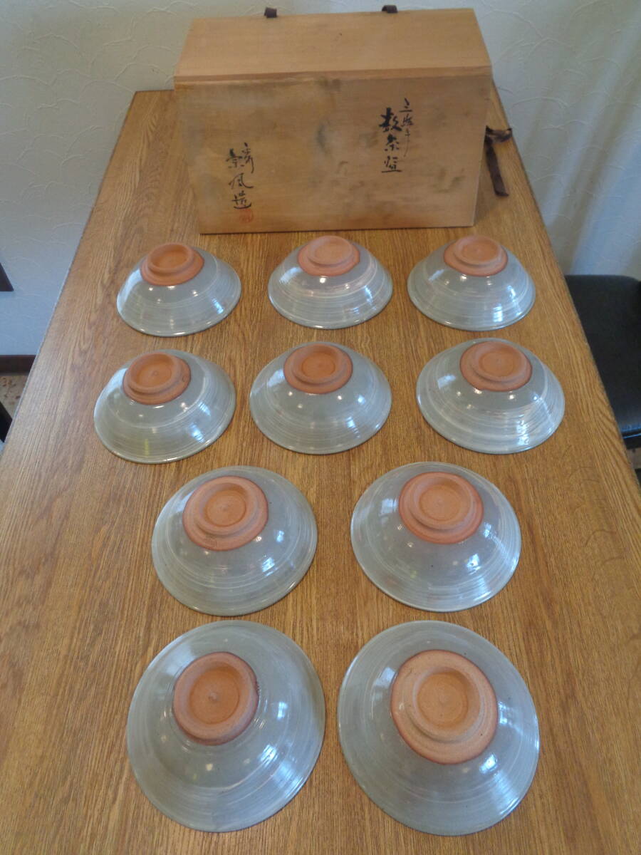 お茶道具 京焼 平安 宗風造 花三島 刷毛目 数茶碗 10客 未使用同然 美品 共箱入り