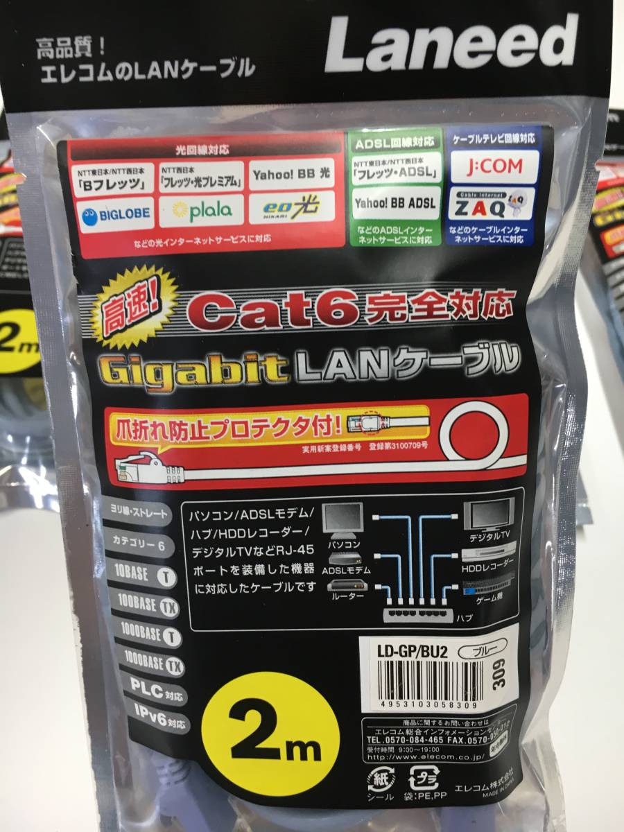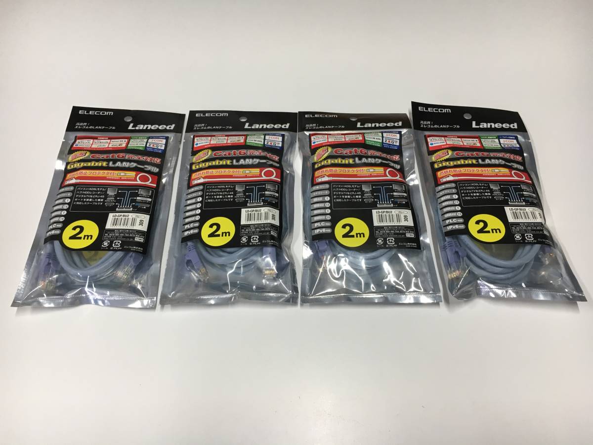 ELECOM Laneed LD-GP/BU2 Gigabit LANケーブル 2M Cat6対応 未使用品4点セット | |||