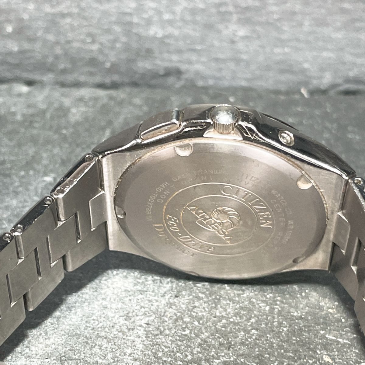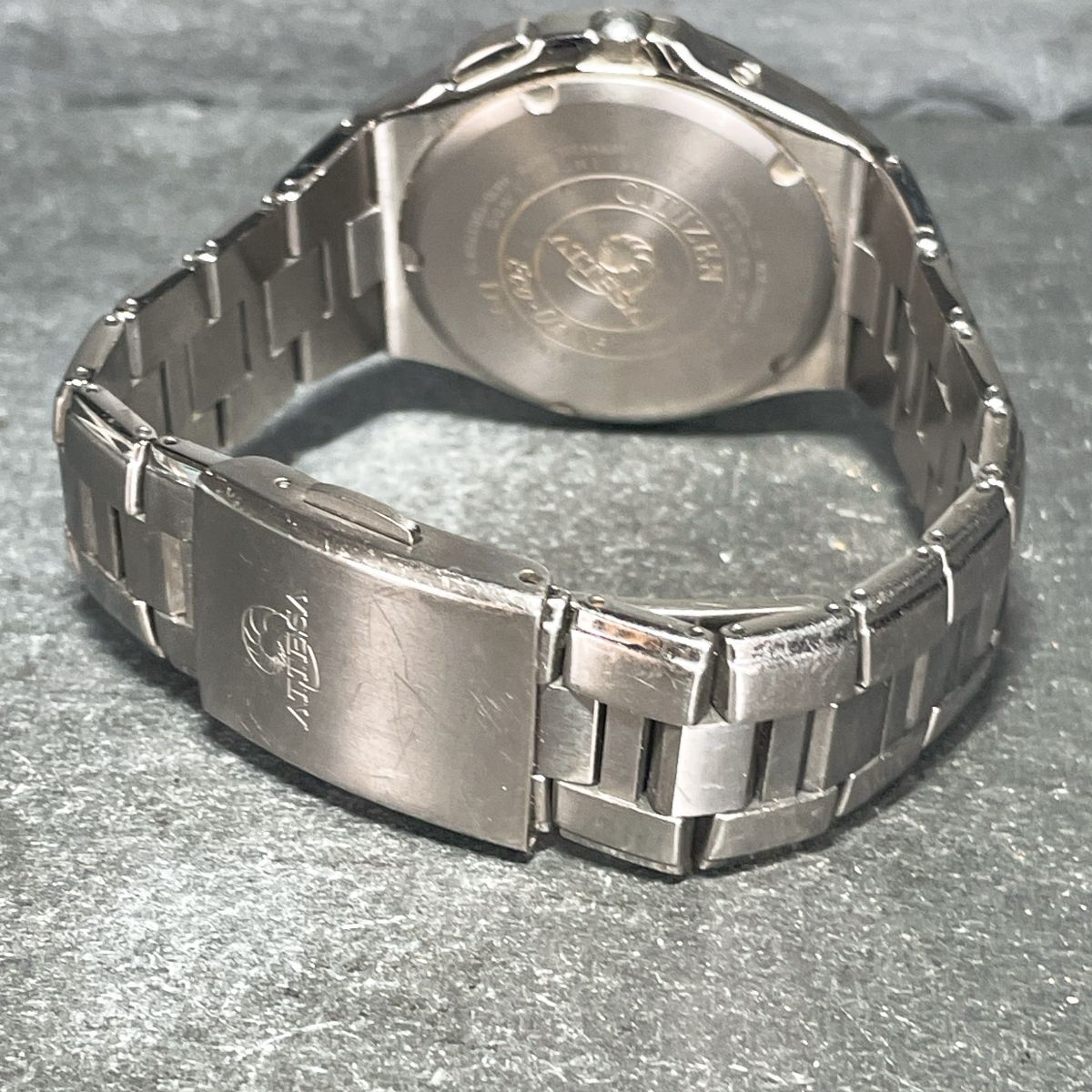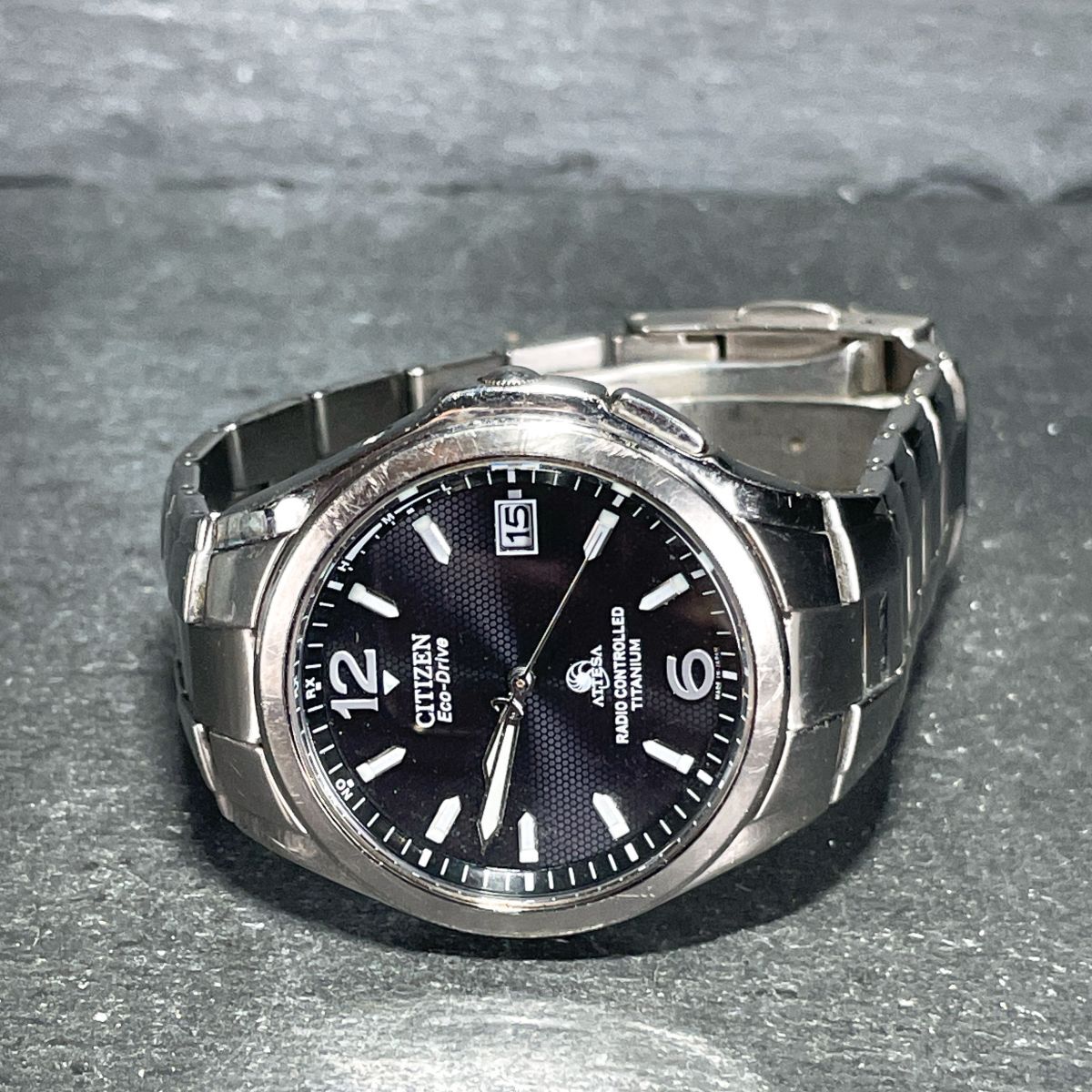 美品 CITIZEN シチズン ATTESA アテッサ H410-T003738 腕時計 アナログ 電波ソーラー 3針 カレンダー メタルバンド チタニウム ブラック