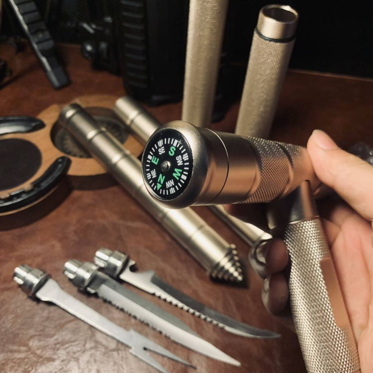 限定ゴールド アウトドア アルミ製 トレッキングポール トレッキングステッキ 全長99cm 収納ケース付 サバイバル キャンプ 野外登山 779g