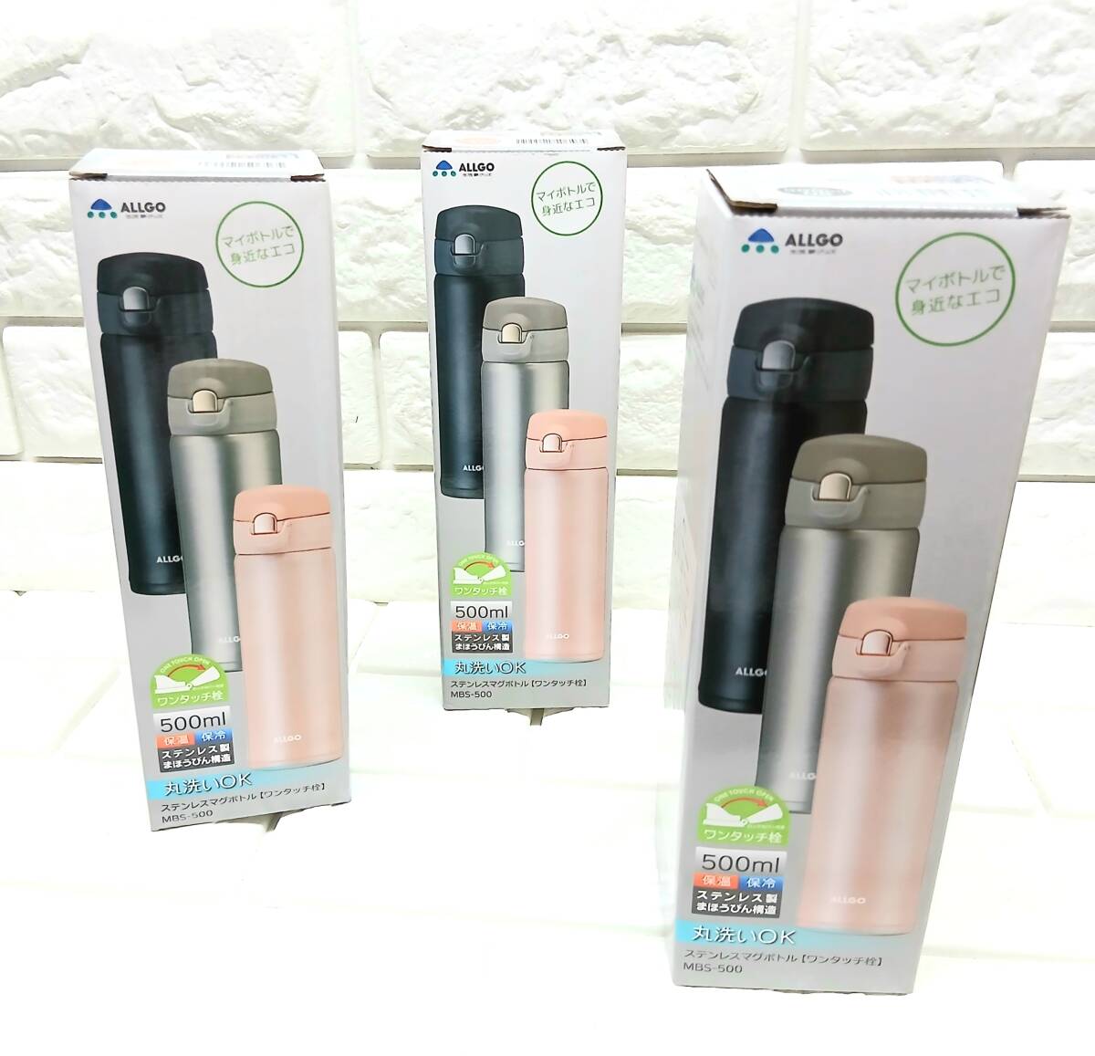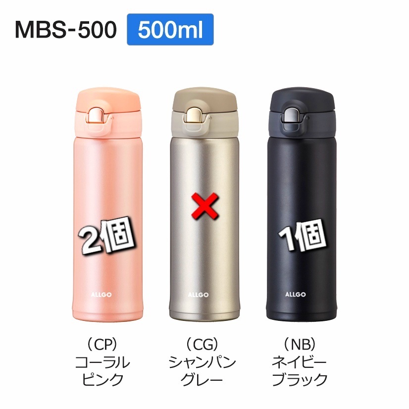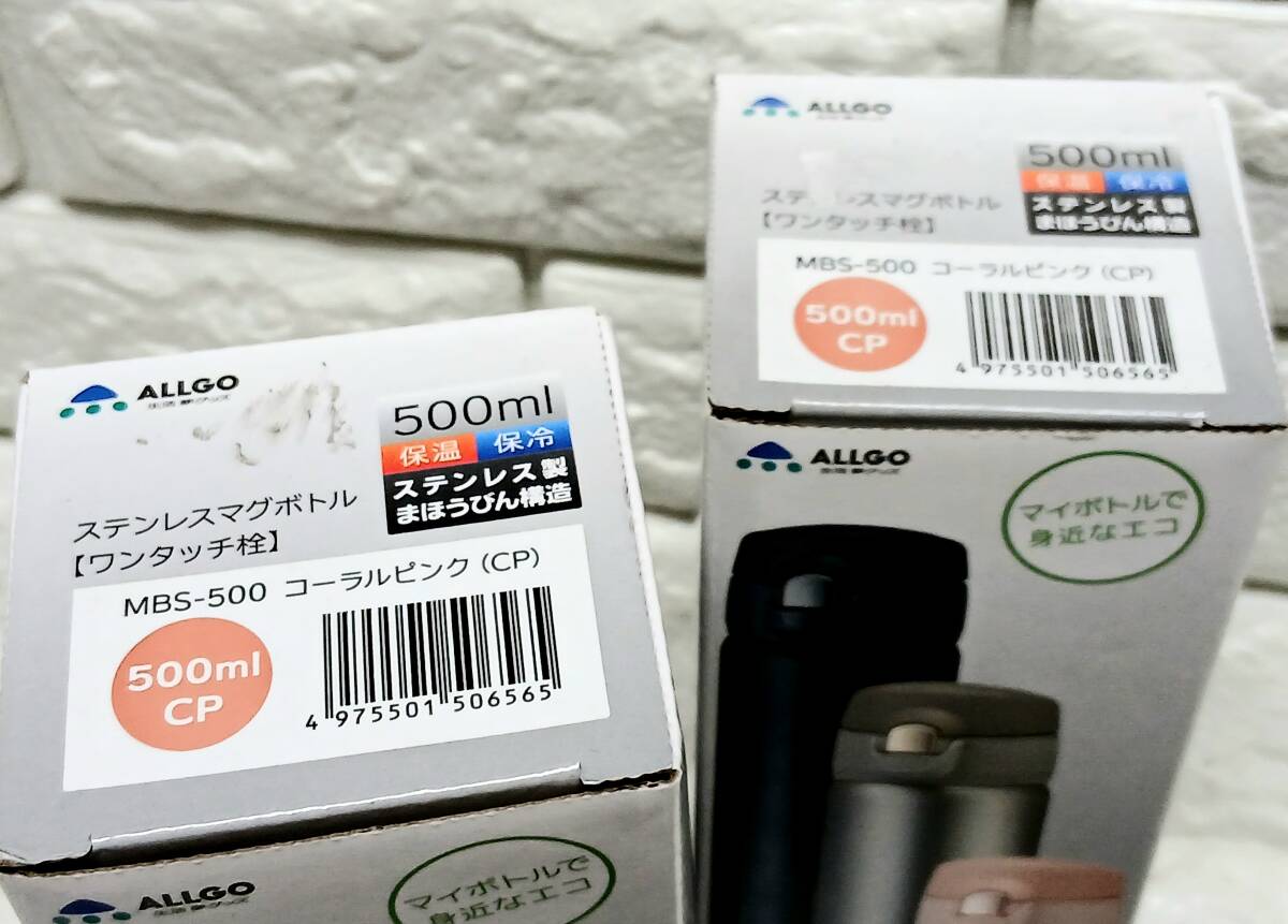 n119【3個セット】ALLGO ステンレスマグボトル (500ml) ピンク×2/ブラック×1 ※ ワンタッチ栓のステンレスマグボトル!!