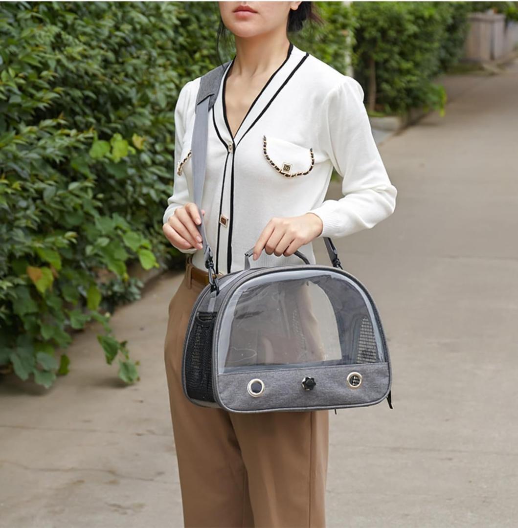 透明窓と通気性メッシュを備えたデザインで、小型鳥の移動にぴったりのバードキャリーです。