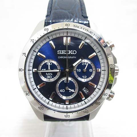 セイコー SEIKO SPIRIT スピリット クロノグラフ 8T63-00D0 腕時計 クォーツ ウォッチ ネイビー シルバー レザーベルト メンズ