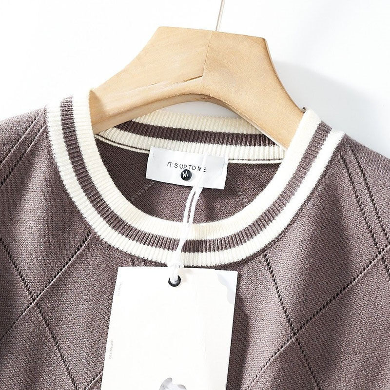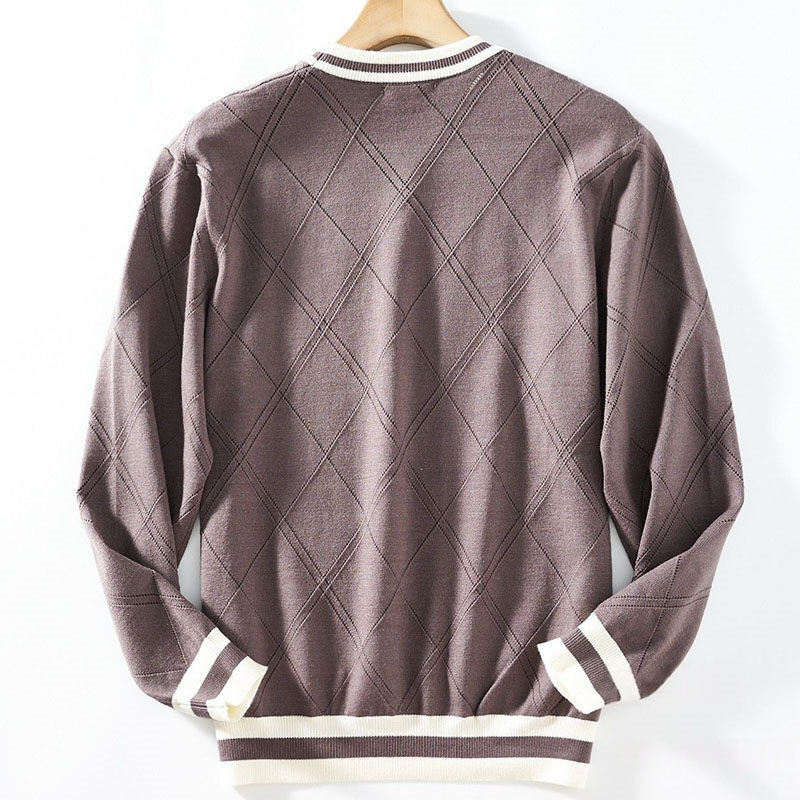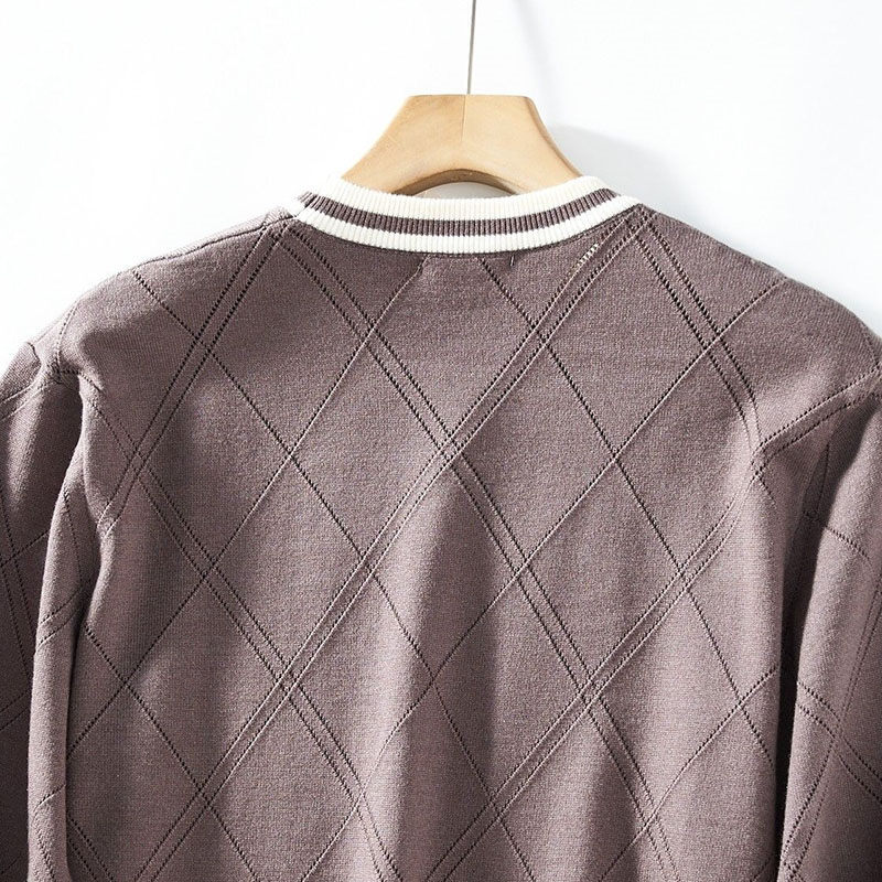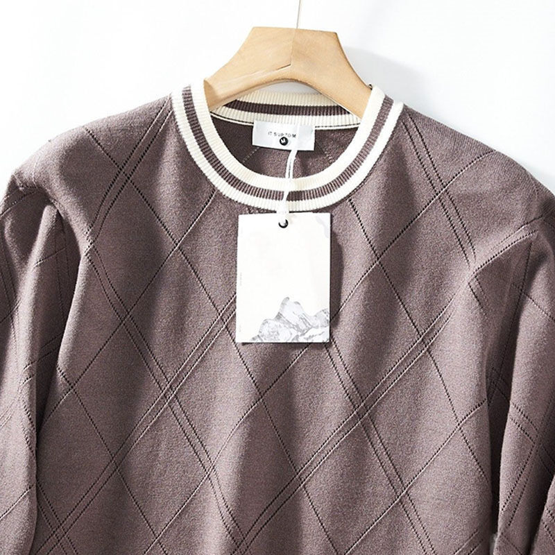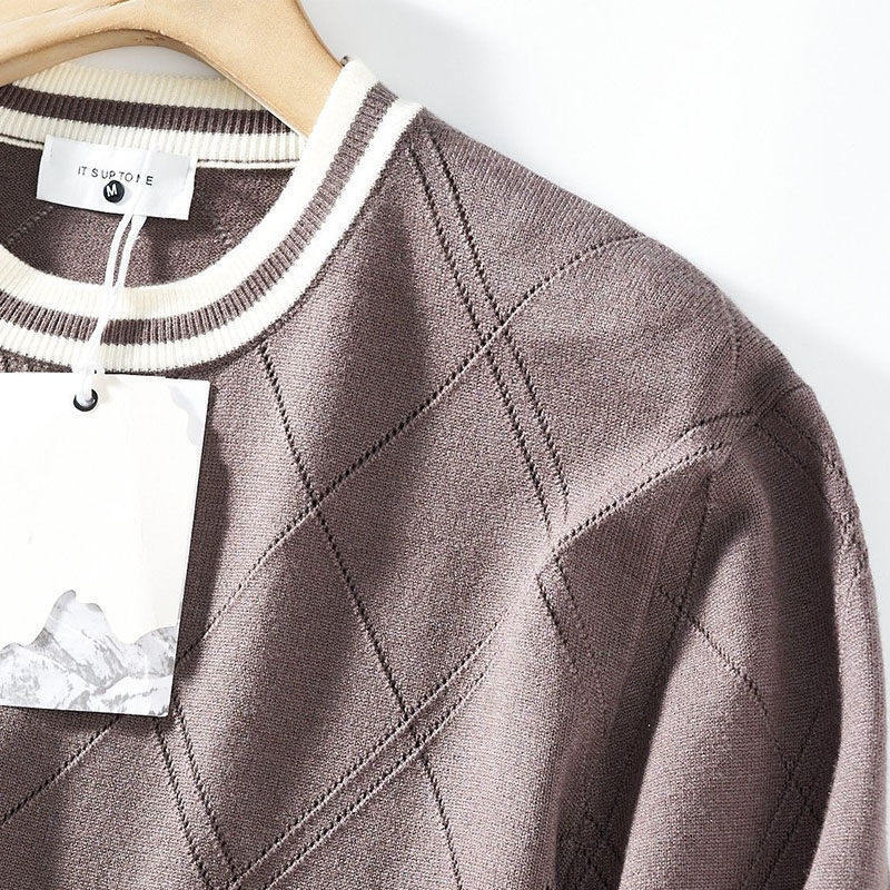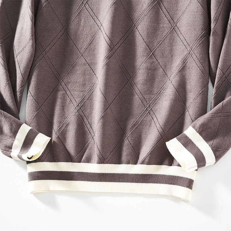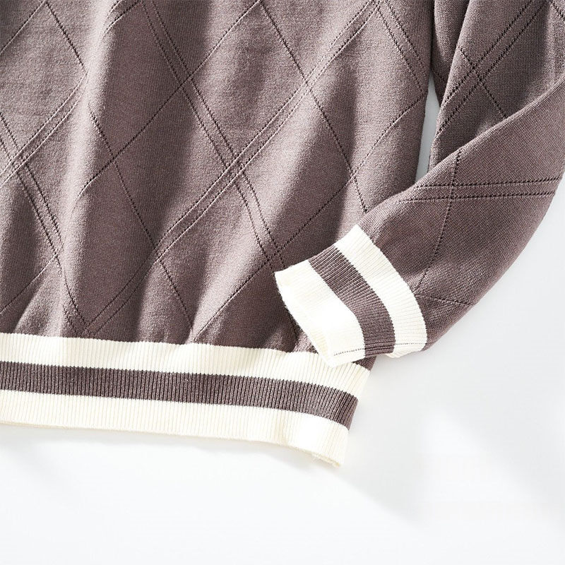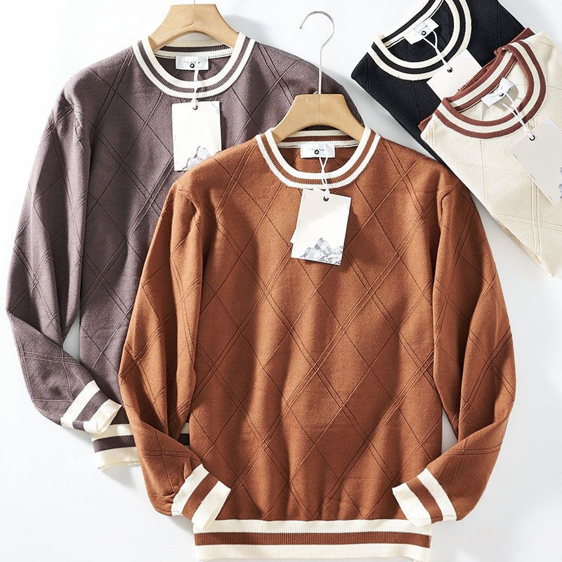 Y6515-3XL ベージュ 新品DCKMANY セーター ニット ジャカード ウール混 バイカラーデザイン ふんわり 暖かい 防寒 秋冬 通勤 メンズ トップス