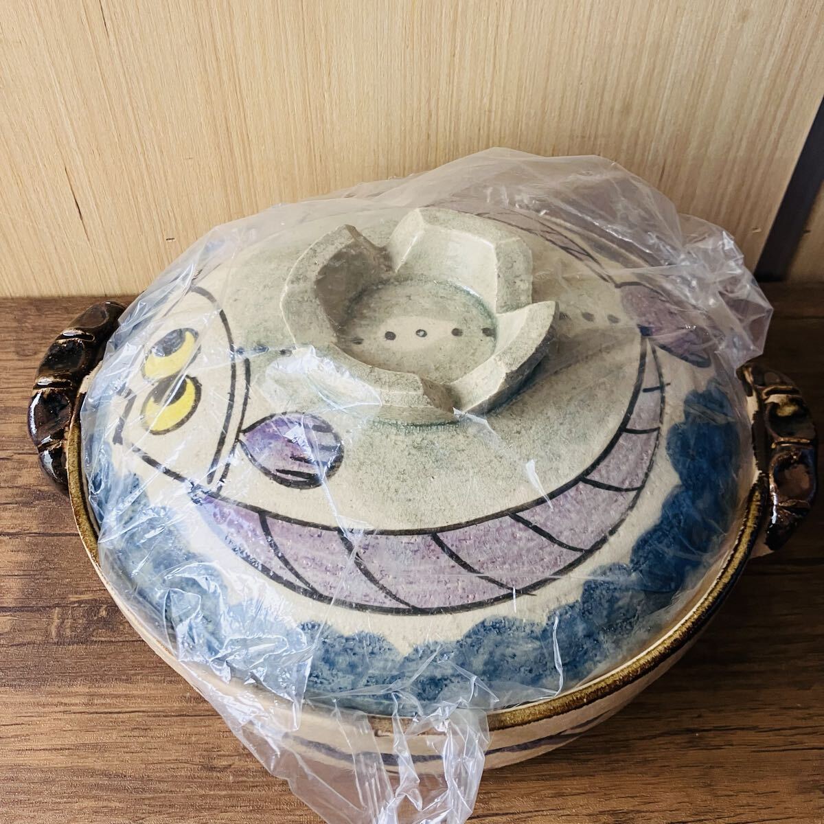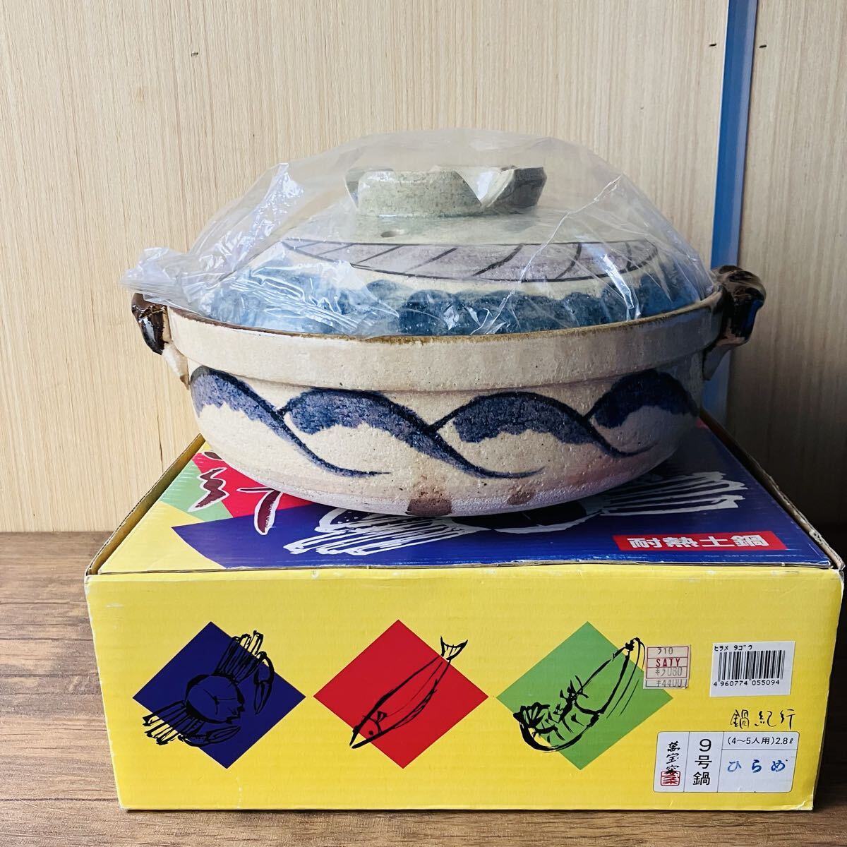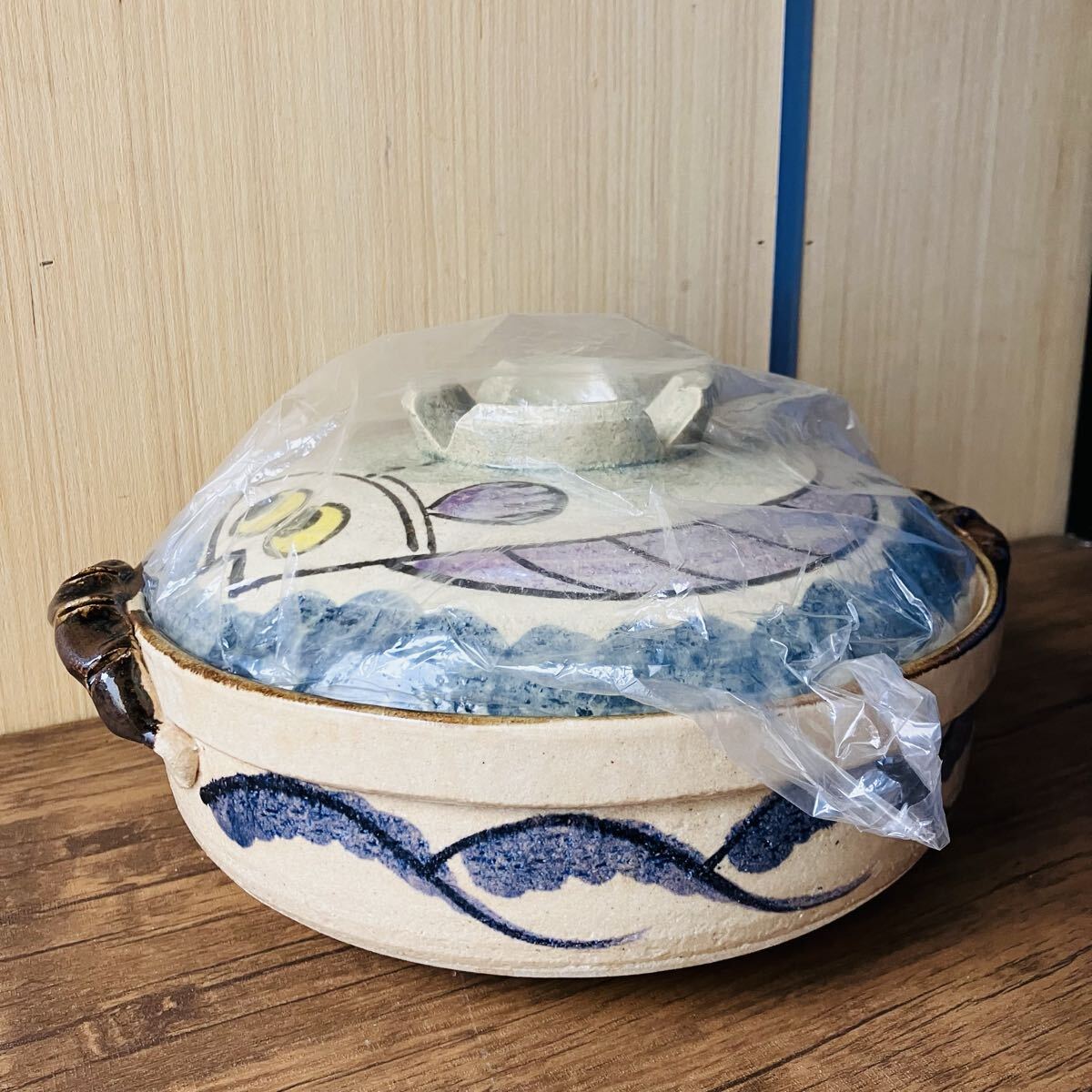 キズ汚れ有り 9号鍋 ひらめ 土鍋  両手鍋  調理器具 釜 店舗 什器 和食器 昭和 レトロ アンティーク