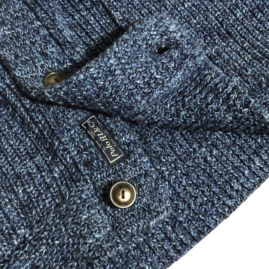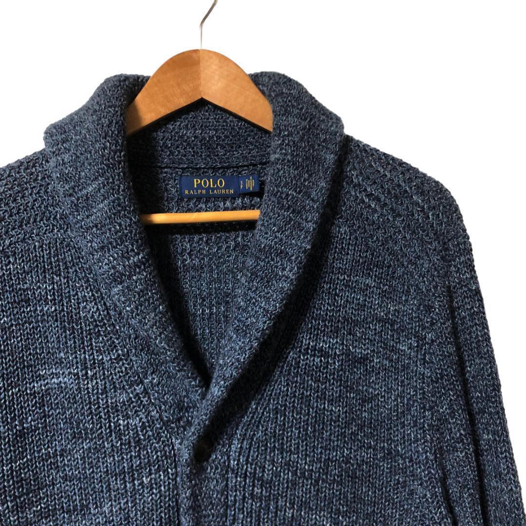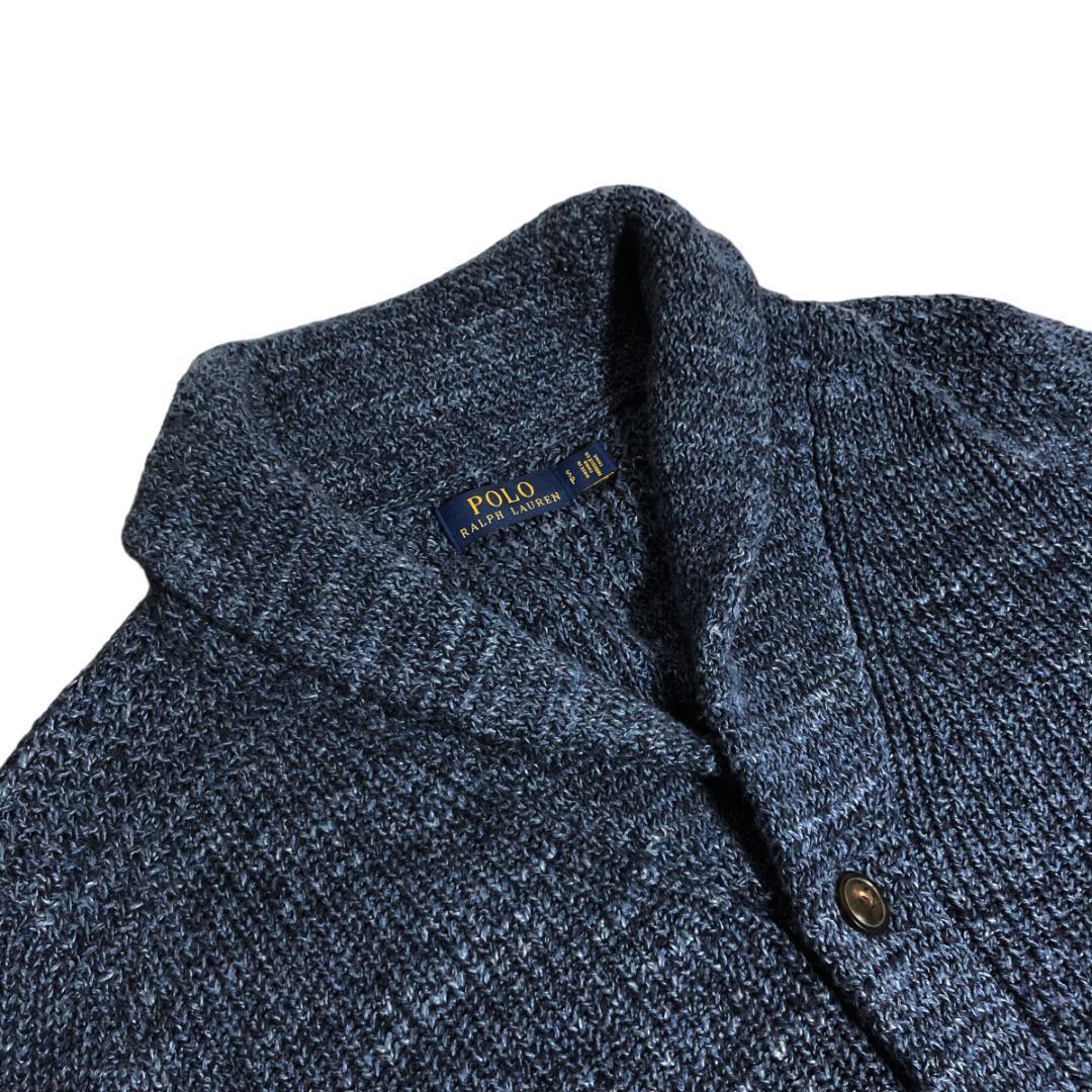 POLO RALPH LAUREN ポロラルフローレン ショール カーディガン 長袖 厚手 コットン S ネイビー ミックスニット メンズ M6