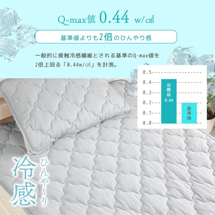 敷きパッド リバーシブル 冷感 接触冷感 ひんやり 冷たい おしゃれ 可愛い 抗菌防臭 防ダニ シングル 洗える グレイッシュブルー