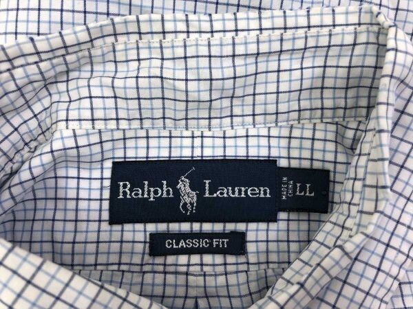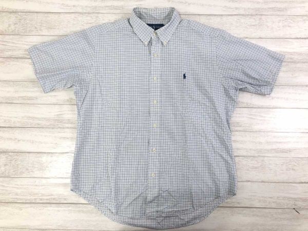 ラルフローレン Ralph Lauren CLASSIC FIT トラッド タッターソール チェック 半袖 ボタンダウン シャツ メンズ コットン100% LL 白 青 です。