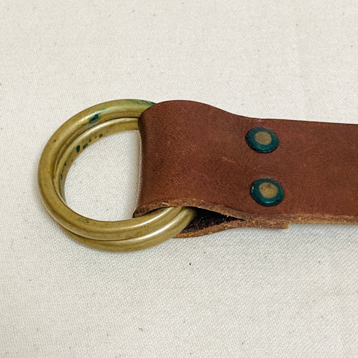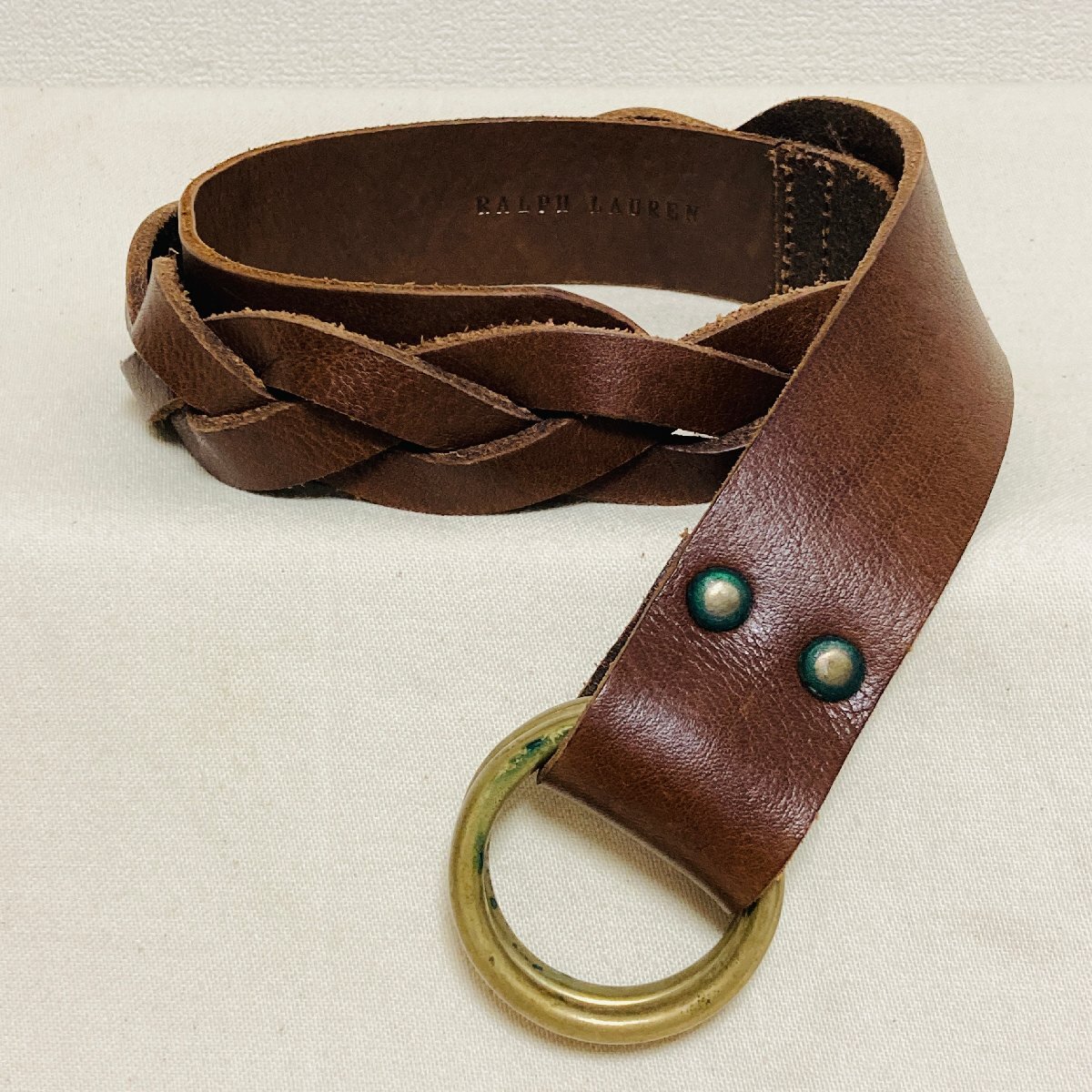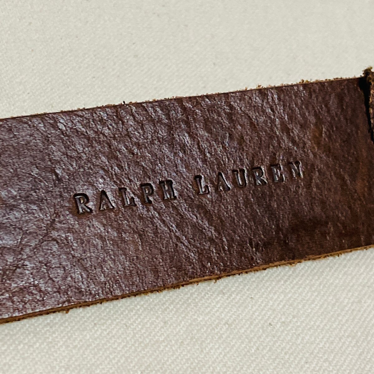 RALPH LAUREN アルゼンチン製 LEATHER/本革 金古美バックル 穴なし フリーサイズ レザーベルト ブラウン/茶系