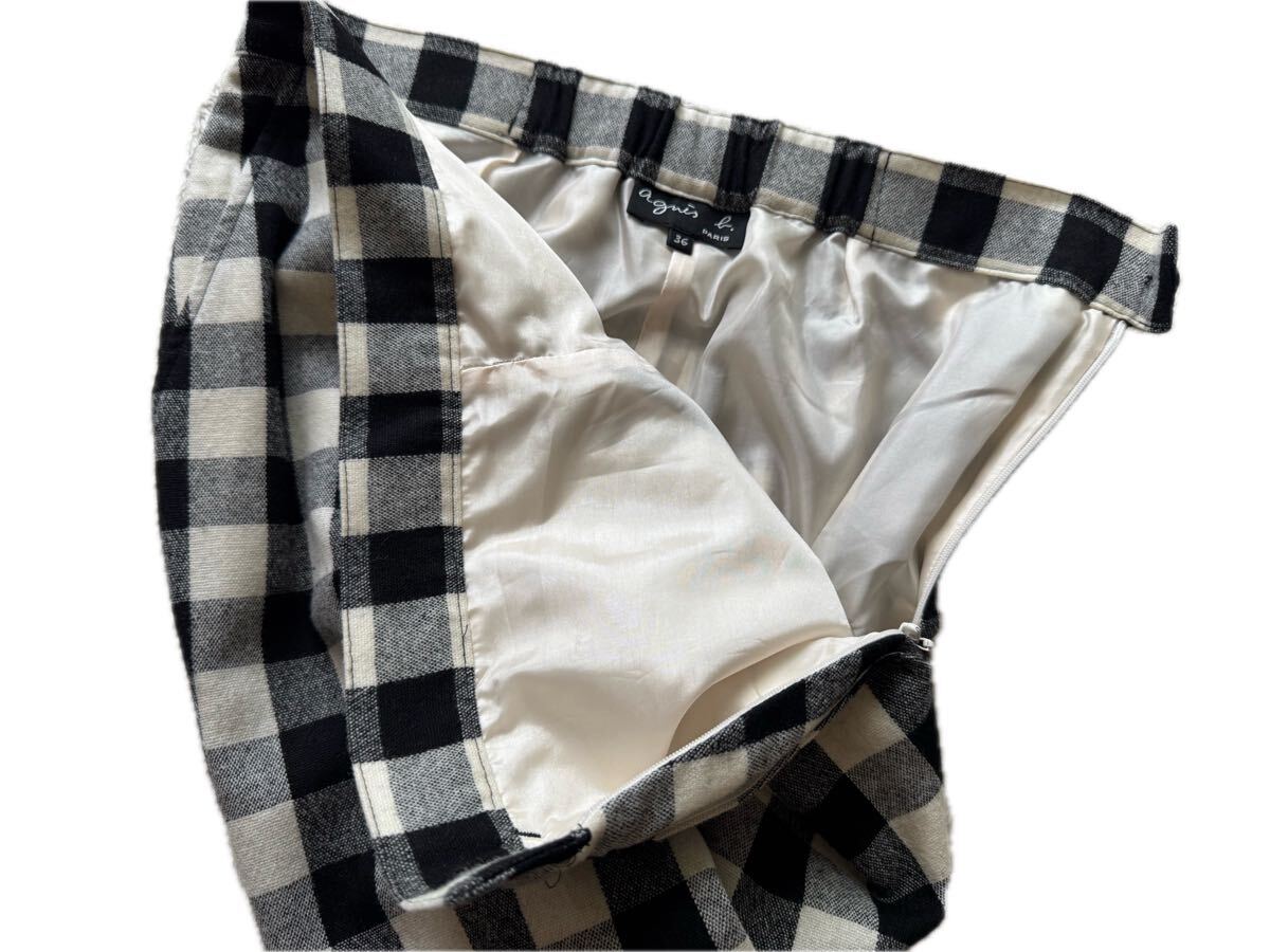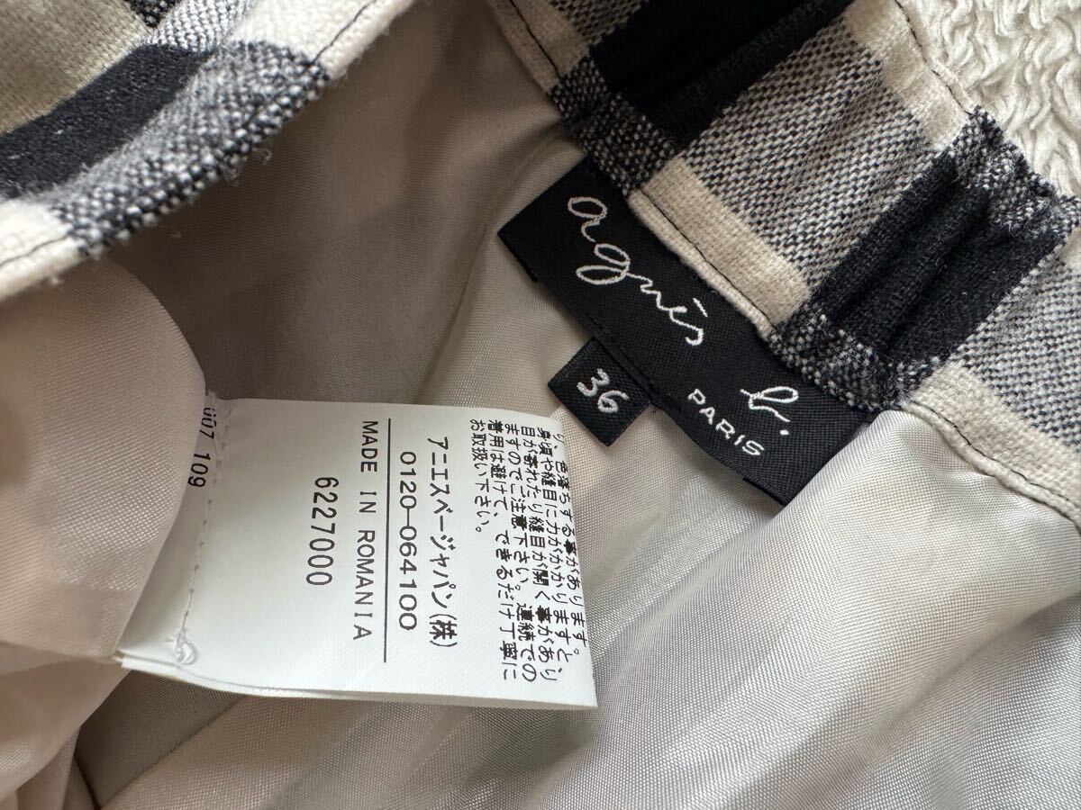 agnis b size36 ルーマニア製チェック柄ドレスパンツ ウール 格子 チェック 黒 白 アニエスベー