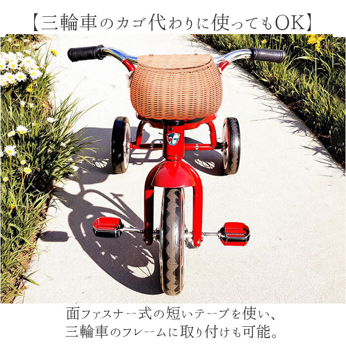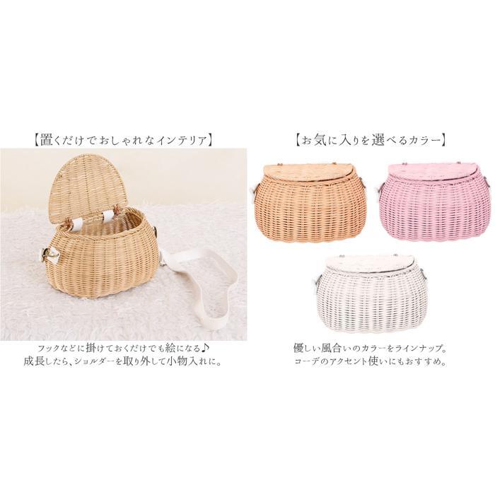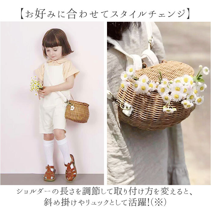 商品説明 | ・・【用途を変えて楽しめるアイテム】 ・使い方いろいろ!大きくなっても長く楽しめる「キッズ用カゴバッグ」。 ・【ナチュラルな雰囲気たっぷり】 ・柳素材などを使い、自然な質感を残したカゴバッグ。ころんと可愛らしい、ミニサイズ。 ・【お好みに合わせてスタイルチェンジ】 ・ショルダーの長さを調節して取り付け方を変えると、斜め掛けやリュックとして活躍! ・(※)ショルダーは取り外し可能です。リュックとして使用する場合、動くとフタが開いてしまう可能性もあるため、ご注意ください。 ・【三輪車のカゴ代わりに使ってもOK】 ・面ファスナー式の短いテープを使い、三輪車のフレームに取り付けも可能。 ・【置くだけでおしゃれなインテリア】 ・フックなどに掛けておくだけでも絵になる♪成長したら、ショルダーを取り外して小物入れに。 ・【お気に入りを選べるカラー】 ・優しい風合いのカラーをラインナップ。コーデのアクセント使いにもおすすめ。 |