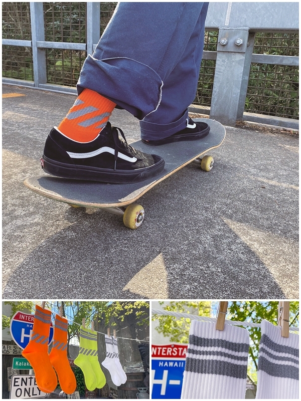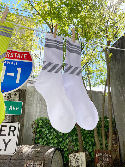 今ストリートシーンで密かな人気を集めるアイテムがこのリフレクターソックス!
