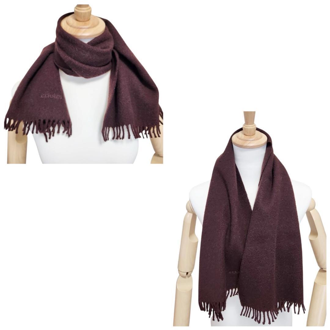 【極美品 マルジェラ期】エルメス ショートマフラー カシミヤ100 刺繍ロゴ