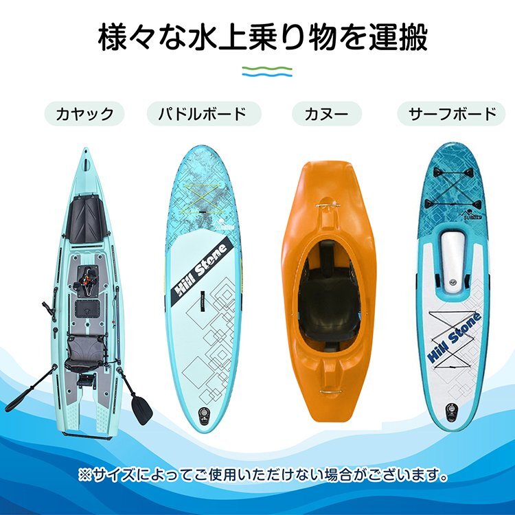 ■ストラップベルト2本付きなので大型のカヤックでもしっかり固定できます。