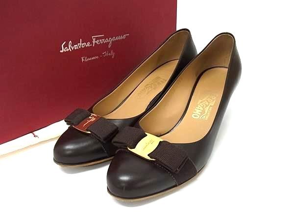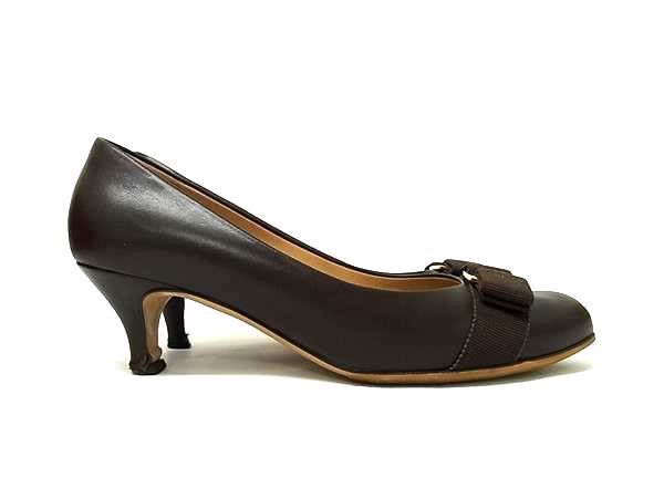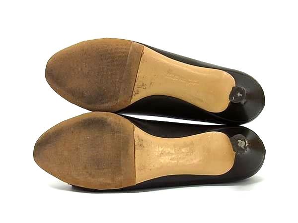 Salvatore Ferragamo フェラガモ ヴァラリボン レザー ヒール パンプス サイズ 7(約24.0cm) 靴 シューズ レディース ブラウン系 DJ7080