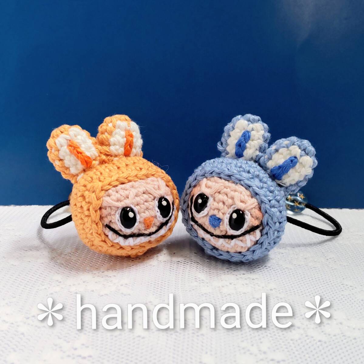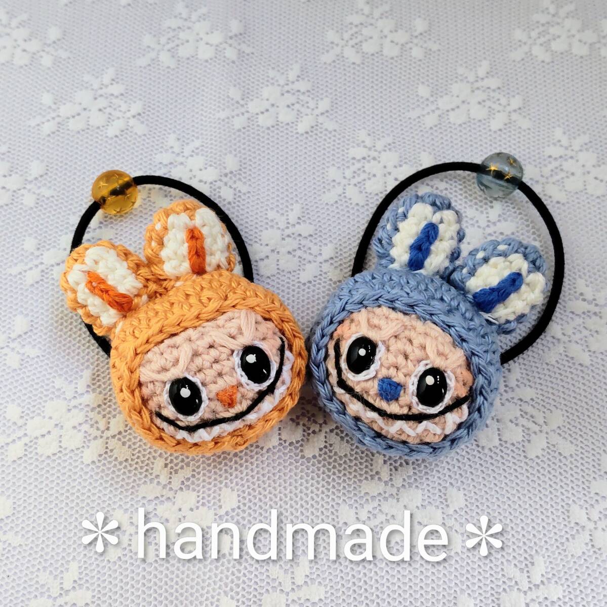 ハンドメイドあみぐるみ★ヘアゴム2個組★ラブブ風