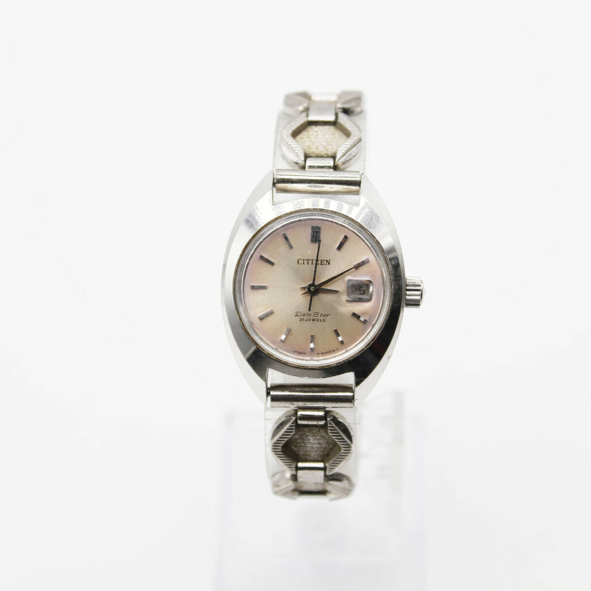 W250924-21 CITIZEN Date Star シチズン デートスター 21石 4-530462 手巻き デイト 稼働 文字盤オレンジ