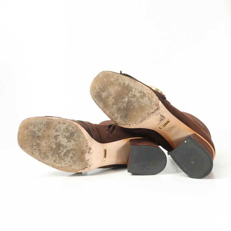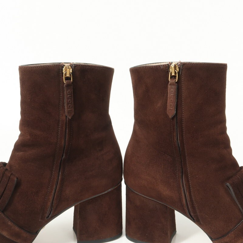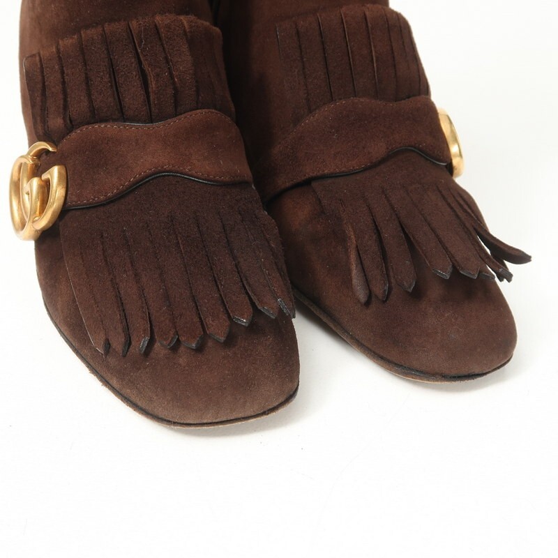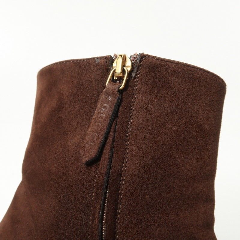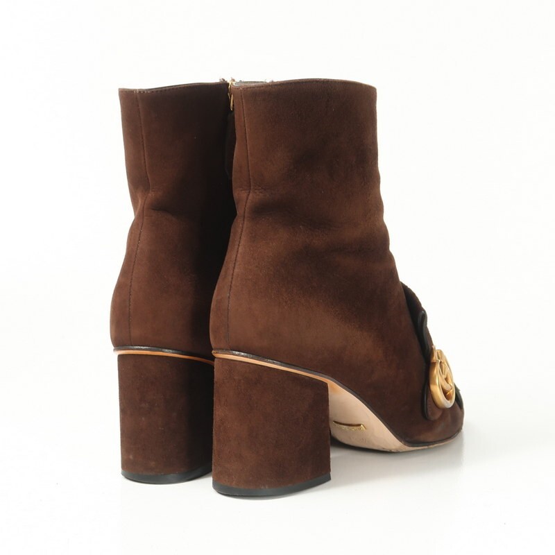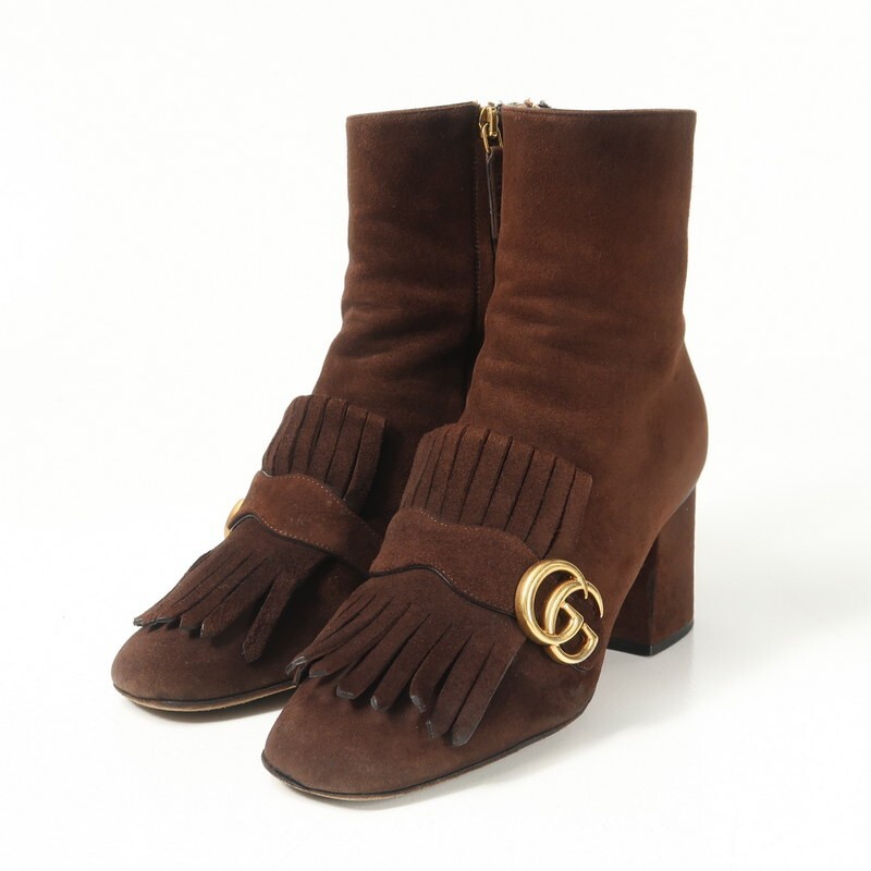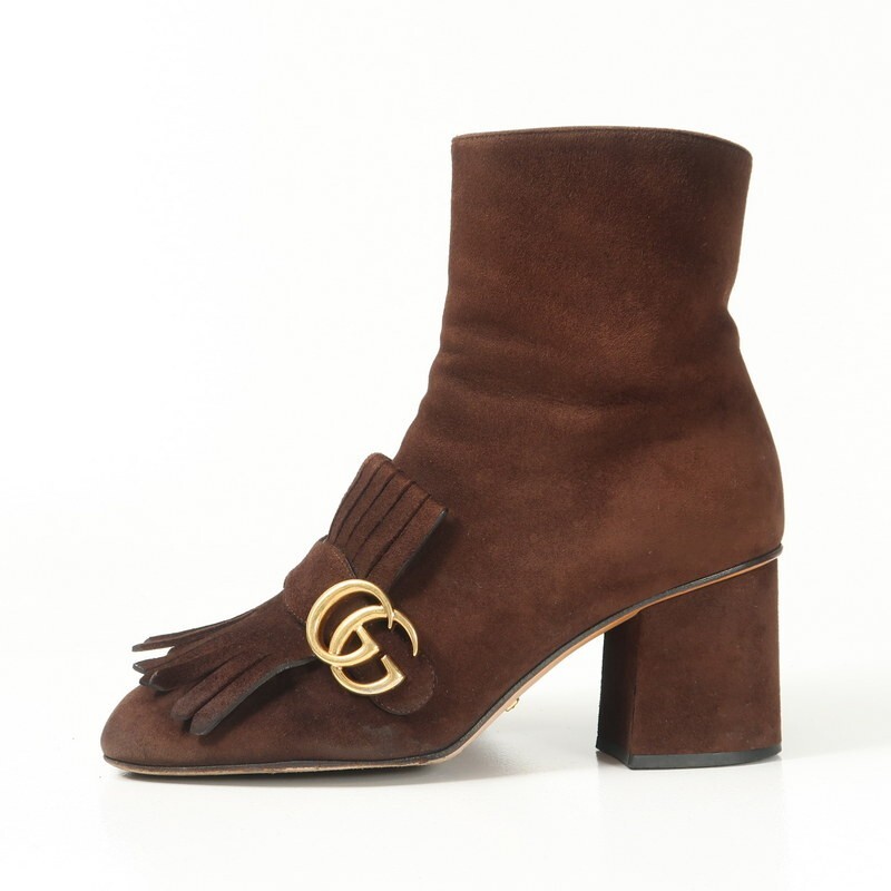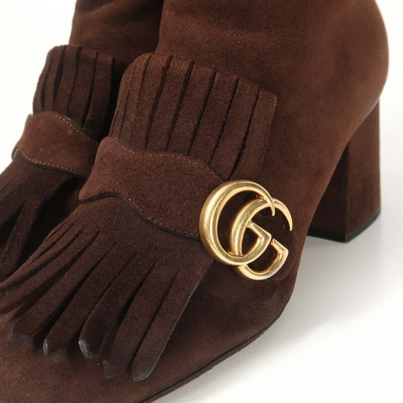 GS2502▼イタリア製▼グッチ GUCCI*408210 GGマーモント スエードレザー サイドジップ ショートブーツ 38.5(24.0cm相当) 靴 ブラウン | |||