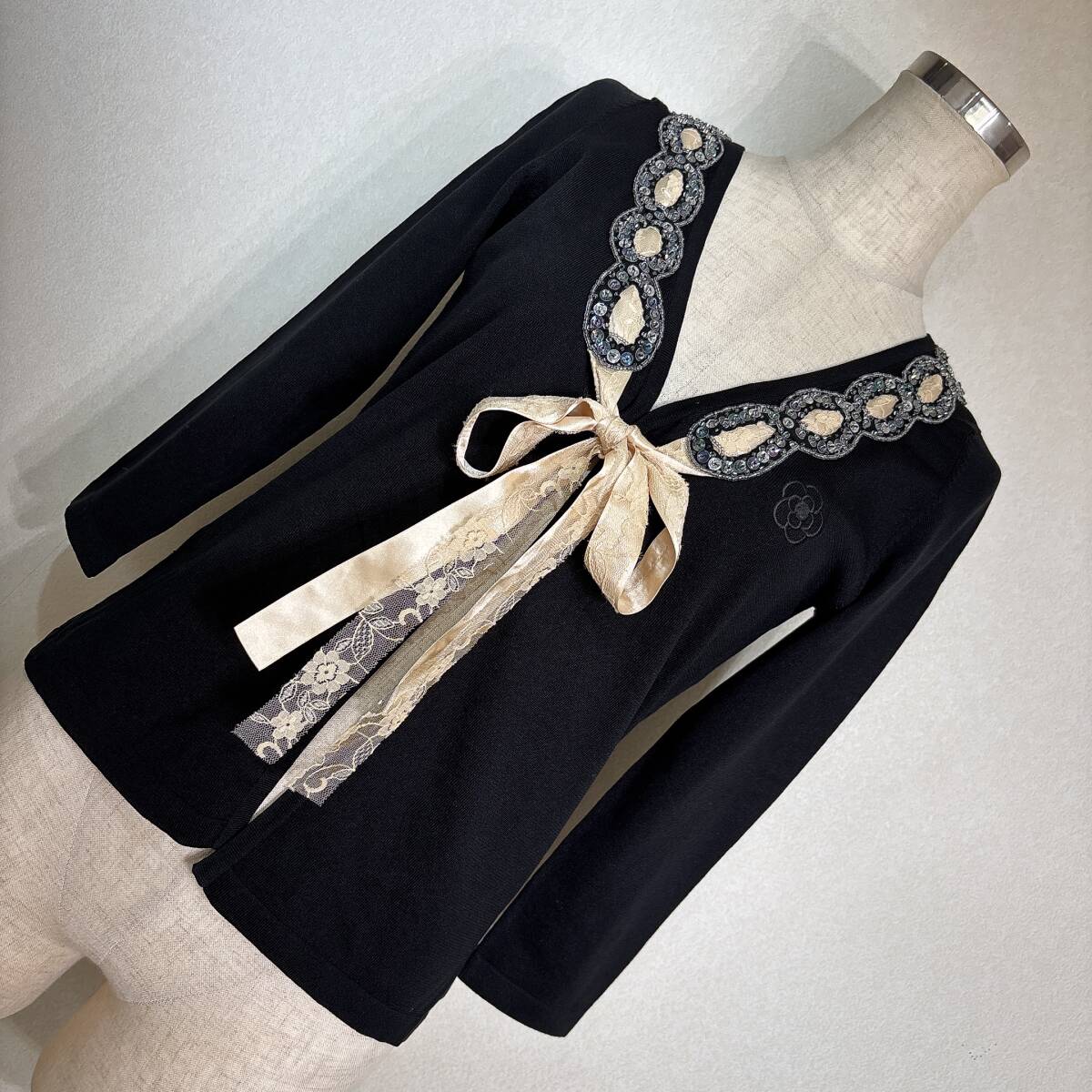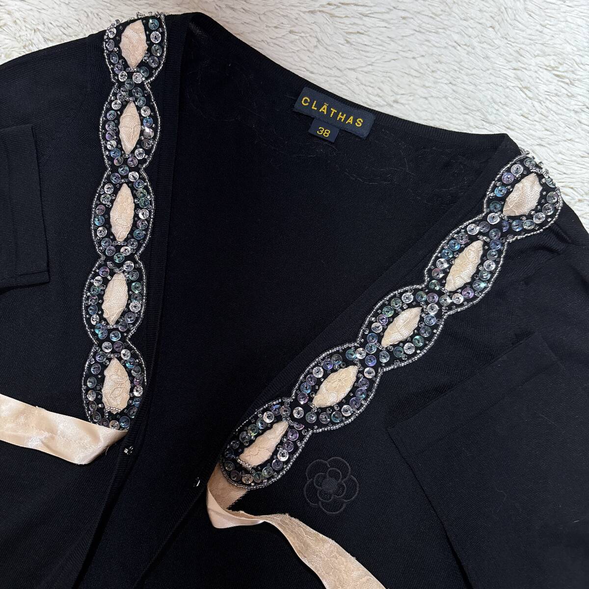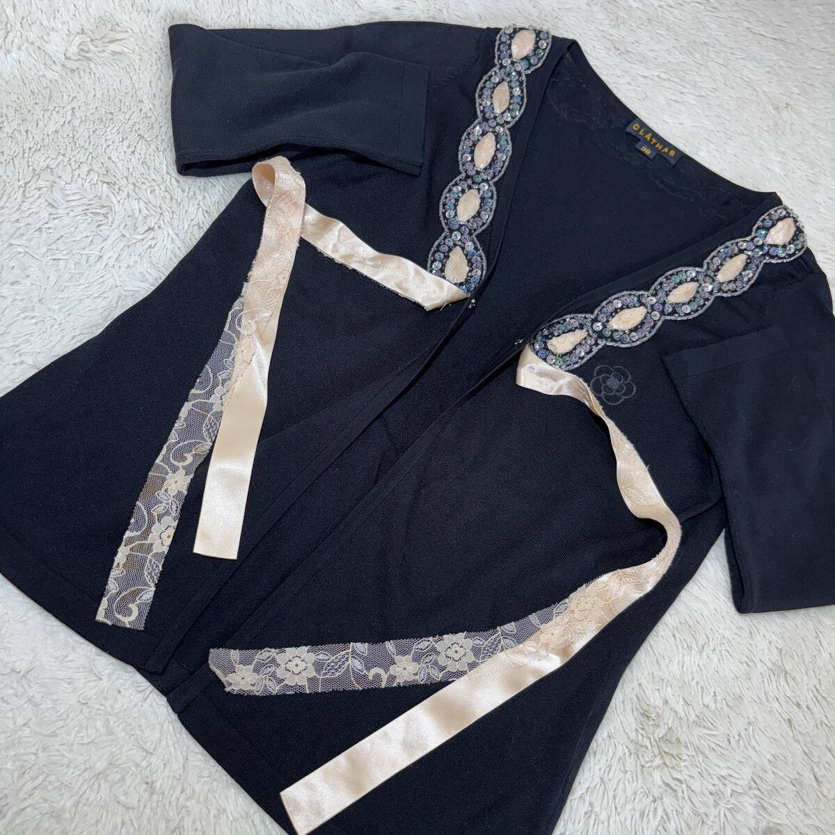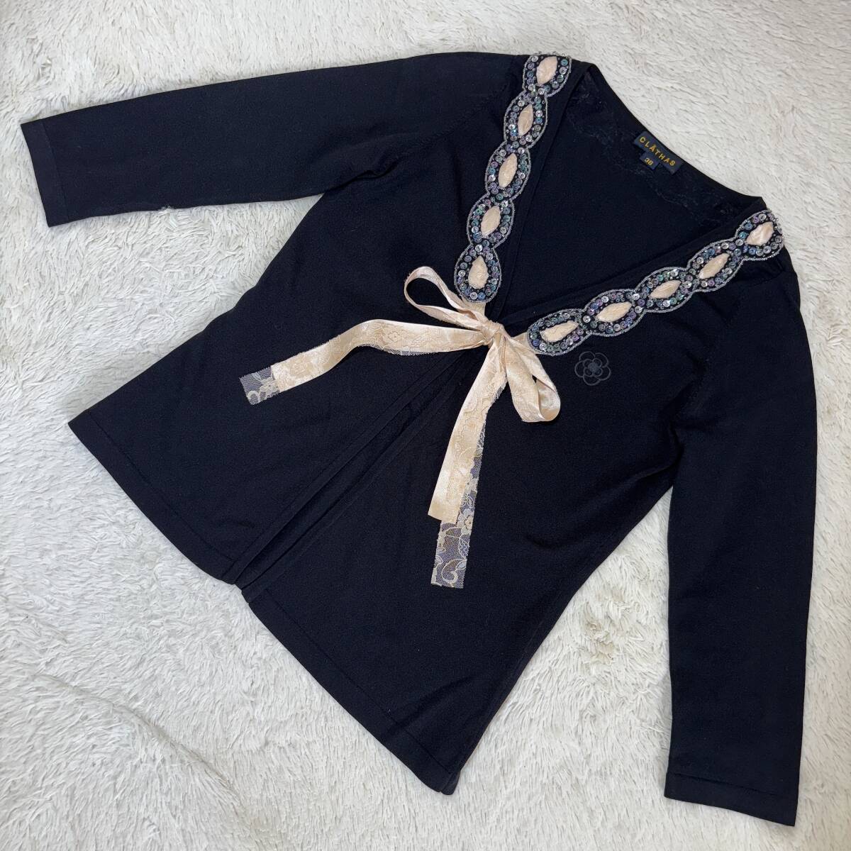 | C413■クレイサス★黒/ビジュー&リボン★7分袖カーディガン■38 | ||||||||||||||||||||