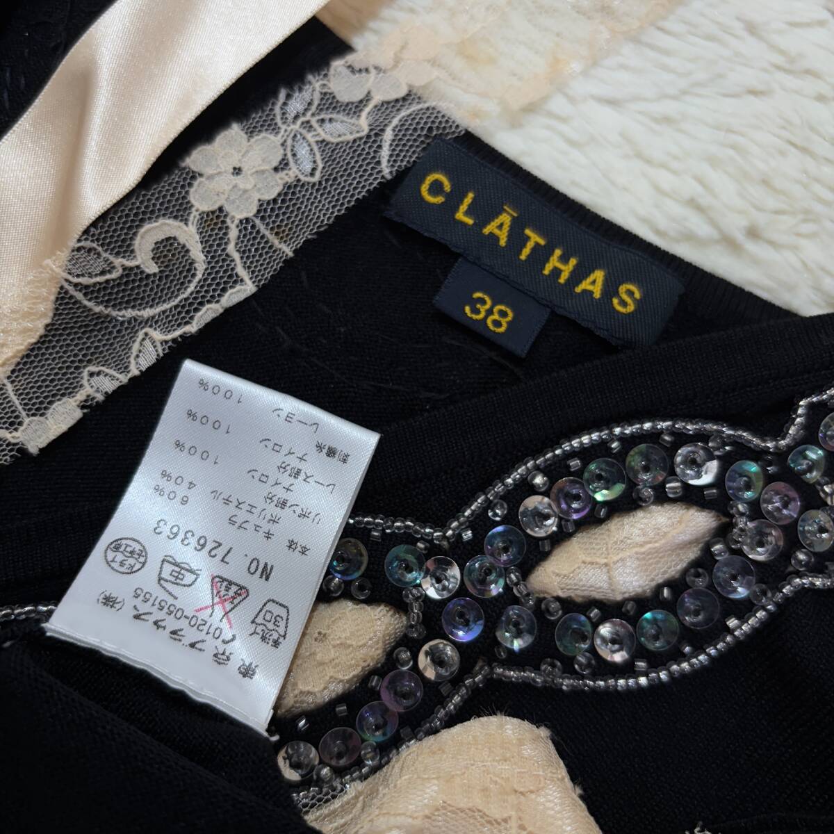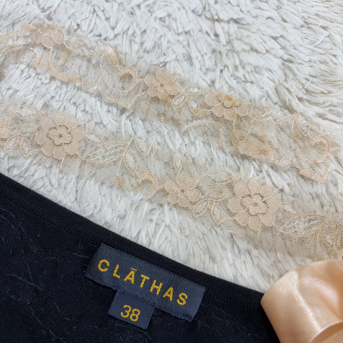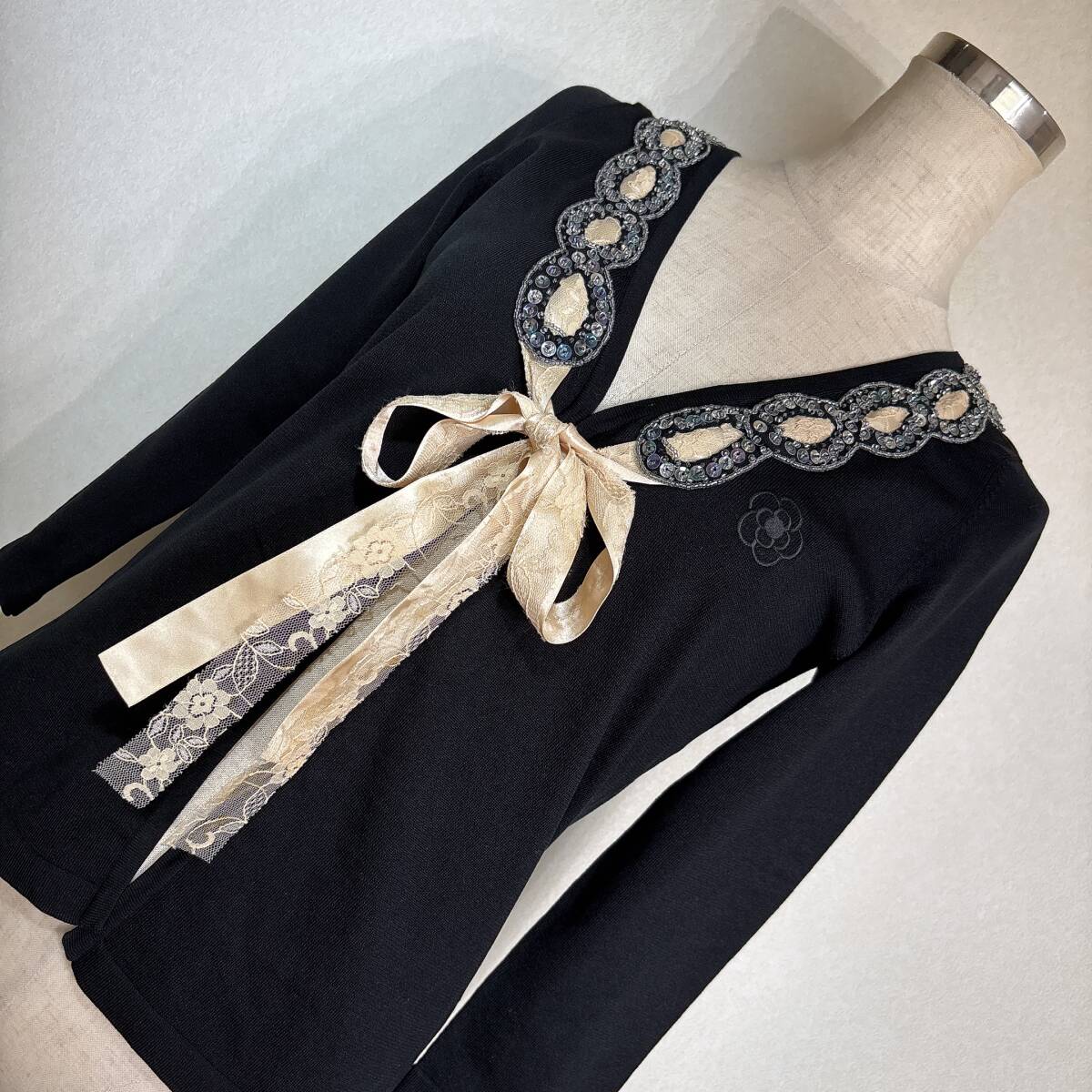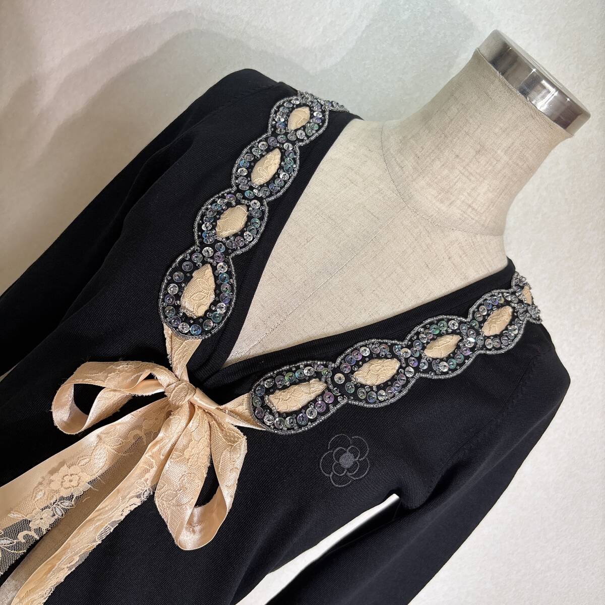| C413■クレイサス★黒/ビジュー&リボン★7分袖カーディガン■38 | ||||||||||||||||||||