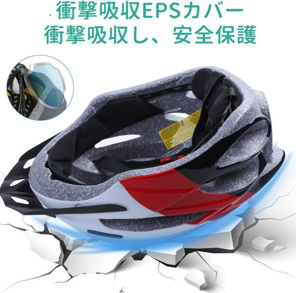 【着脱可能サンバイザー付き&3 IN 1デザイン】自転車 ヘルメットの外部には堅固なPC素材、内部には高密度のEPSを採用しました。 衝撃吸収性に優れ、外部からの衝撃を効果的に吸収することができます。取り外す可能なサンバイザーとマグネット式ゴーグル付き、同時に自転車ヘルメットに装着することができます。またはお好きなスタイル/環境による装備品を変更することもできます。両方とも日差しの時にライダーの目を保護し、砂、防風、防塵、グレア防止機能付、不快感を防ぎ、視野性を確保します。