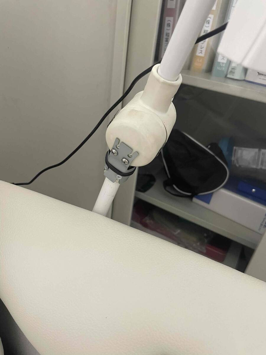 デイスプレイアーム下側が破損(ひび割れ)したので金属板で補修しています。
