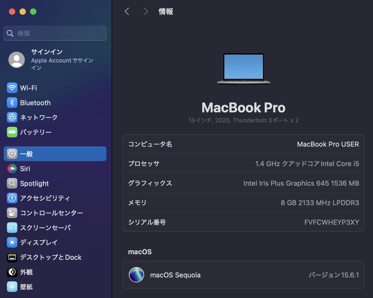 【現状品】MacBook Pro(13インチ,2020,Thundeabolt 3ポート x 2)256GB/8GB〈MXK32J/A〉⑥