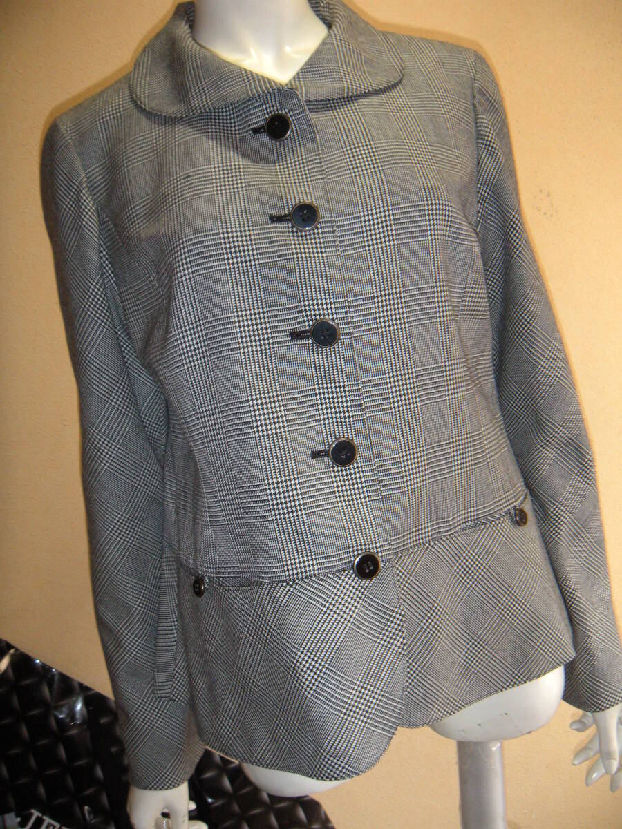 Color(色):画像参照 Size(表記サイズ):画像の表示参照 肩幅35cm、身幅50cm、着丈55cm、袖丈58cm (平置きで計測できる項目のみ記載) Material(素材):画像の表示参照 Condition(状態):着用感多少、目立つ程度は見られず、問題なくお使いいただけます。 a note(備考):上品なデザインです。 注)画像の白い丸はフラッシュの加減で、汚れなどではございません |
