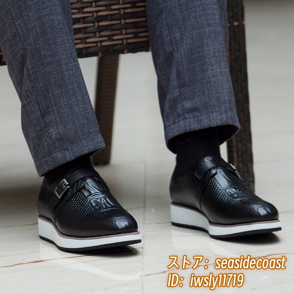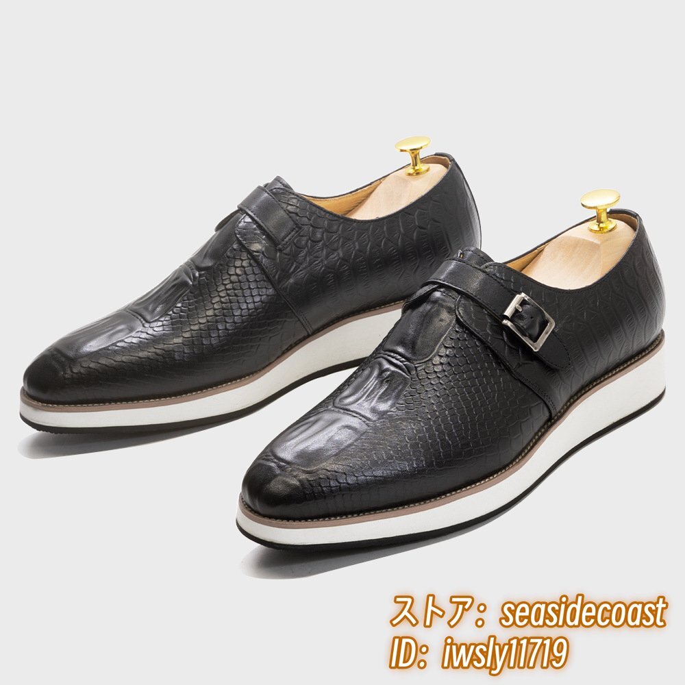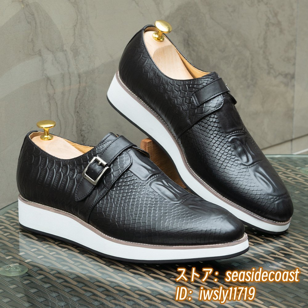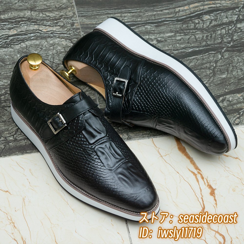 超希少&定価9万 鰐柄 メンズ 本革 ローファー スリッポン 職人手作り ビジネスシューズ 高級牛革 紳士靴 レザーシューズ ブラック 24.5cm