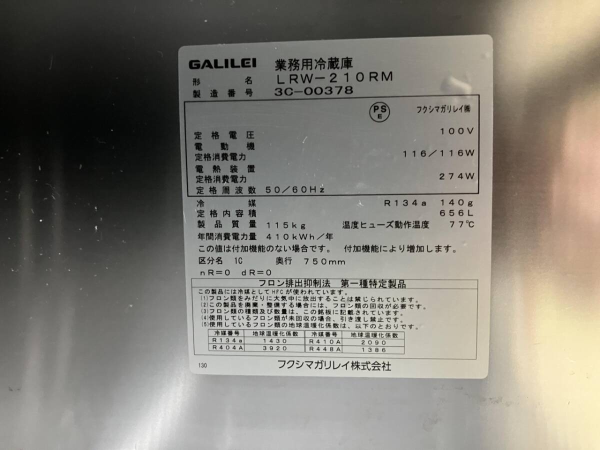 120125 ★美品! フクシマガリレイ 台下冷蔵庫 LRW-210RM★
