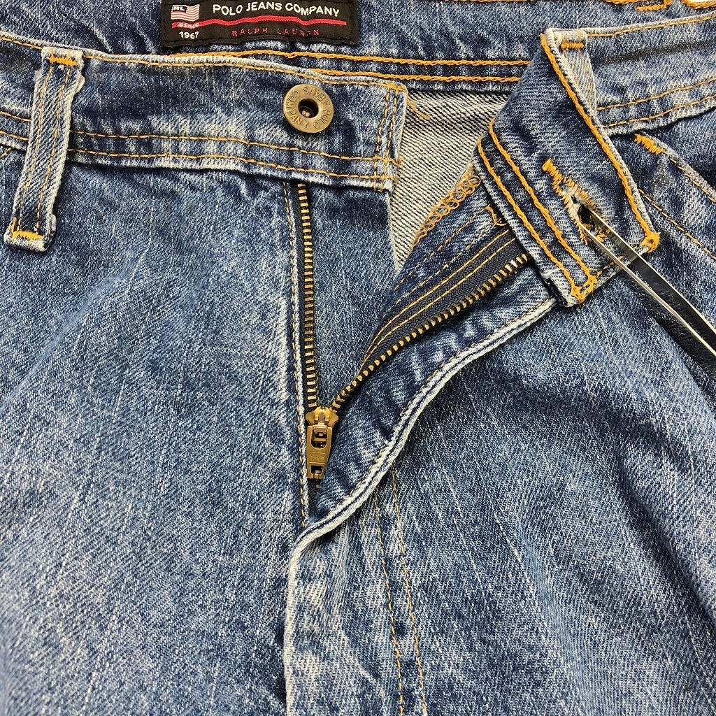 【商品管理番号】 V3315 【ブランド】 POLO JEANS/ポロジーンズ ラルフローレン 【サイズ】 W34 L30 【実寸サイズ】 ウエスト:約92cm 股上:約35cm 股下:約77cm わたり幅:約40cm 裾幅:約25cm 【主な素材】 表地 : コットン 【色】 ブルー 【仕様】 デニム ペインターパンツ 【状態】 汚れ:腹部、腰、股、もも、裾裏地 キズ:裾 |